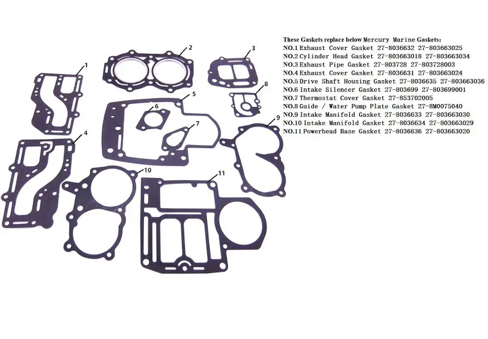 Отзывы о Полный комплект уплотнительных прокладок для подвесного двигателя Mercury Mariner 2-Stroke