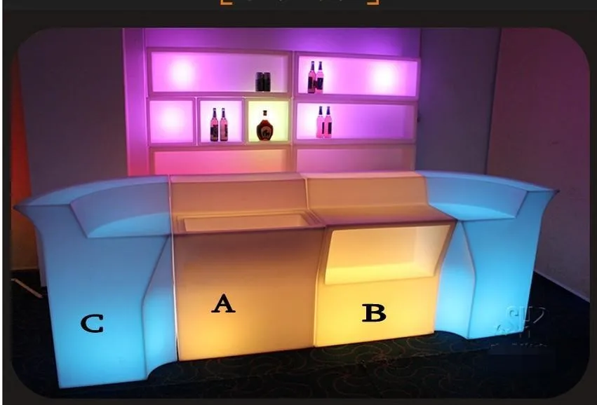 Общее использование: Коммерческая мебель Тип: барная мебель Специфическое использование: бар Tableis_customized: Да Внешний вид: современный Материал: пластик Размер: 90*80*110,80*80*110 В сложенном виде: Нет Повод: бар, ночной клуб, сад, вечерние, пабы, отель, ресторан, торжественное открытие Время зарядки: около 5-7 часов Заряжайте один раз, он может работать от 10 до 12 часов Управление: пульт дистанционного управления Светильник: 16 цветов на выбор, 4 режима мигания Встроенная перезаряжаемая литиевая батарея Срок службы светодиодной лампы: 50 000 часов Напряжение зарядки: 110-240 В (AC) Водонепроницаемость: IP 54 Если вы хотите сделать барную стойку, вам нужно купить 2 шт. угловой бар и 1 шт. прямой бар или купить 2 шт. угловой бар, 2 шт. прямой бар
