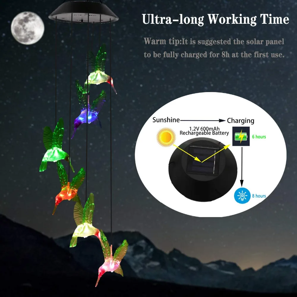 Humming Bird светодиодный светильник на солнечной батарее, романтичный ветряной колокольчик, светильник s, ветряной колокольчик, струнный светильник, меняющий цвет для двора, Декор