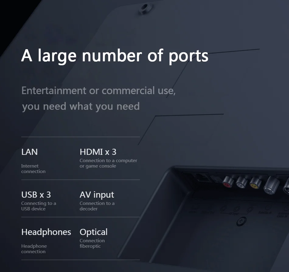 4K +HDR Smooth movement 64-bit quad-core processor A large number of ports Dolby + DTS All metal body