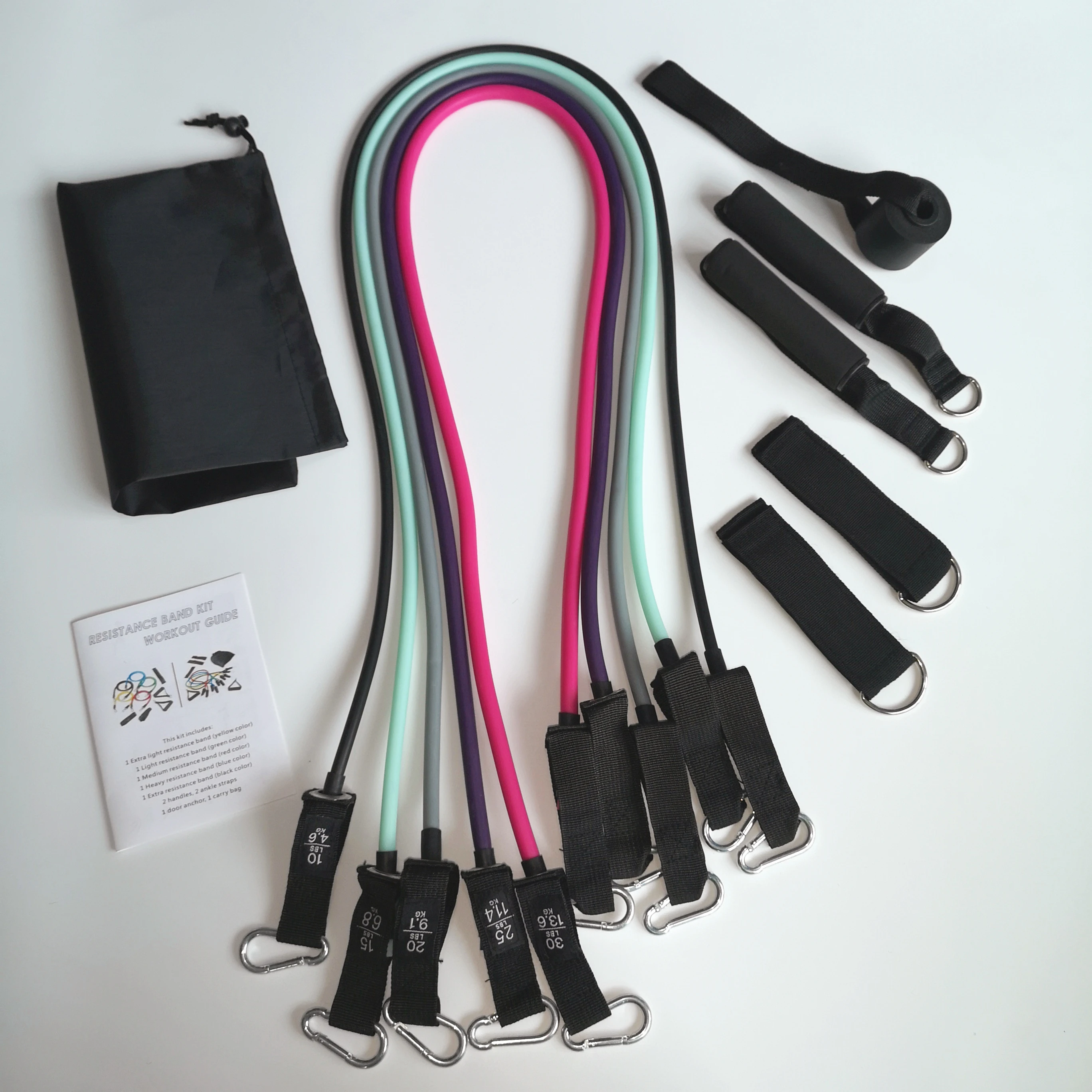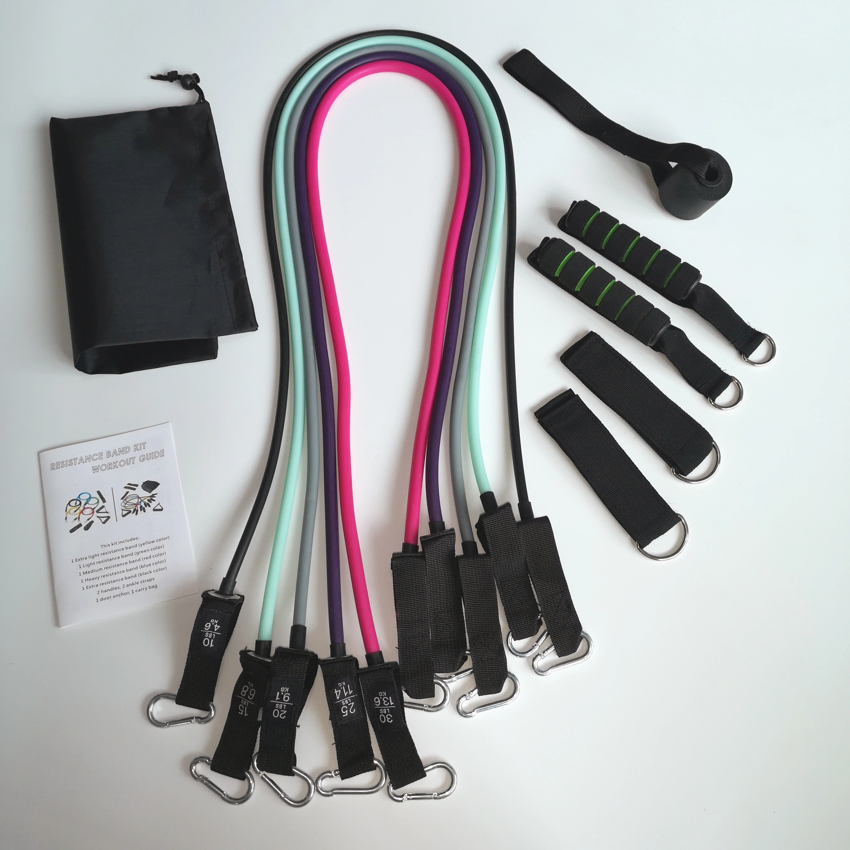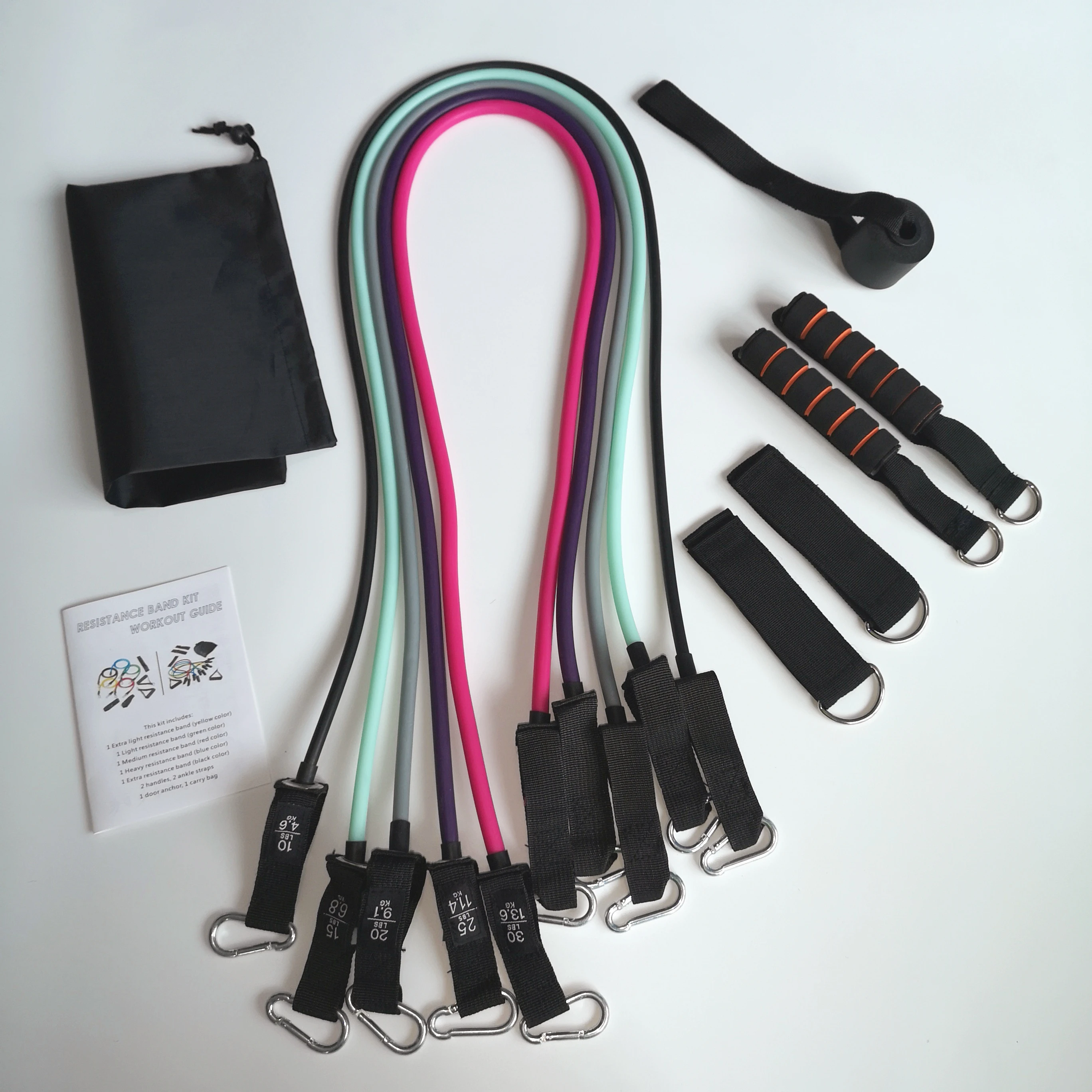 Все ленты для упражнений имеют длину 48 дюймов. 2x мягкие ручки с Мягкой рукояткой, 1x безопасный для двери якорь, 2x Мягкие Ремешки на лодыжке, 1x сумка для переноски. Набор резистивных резинок 4x 1x инструкции