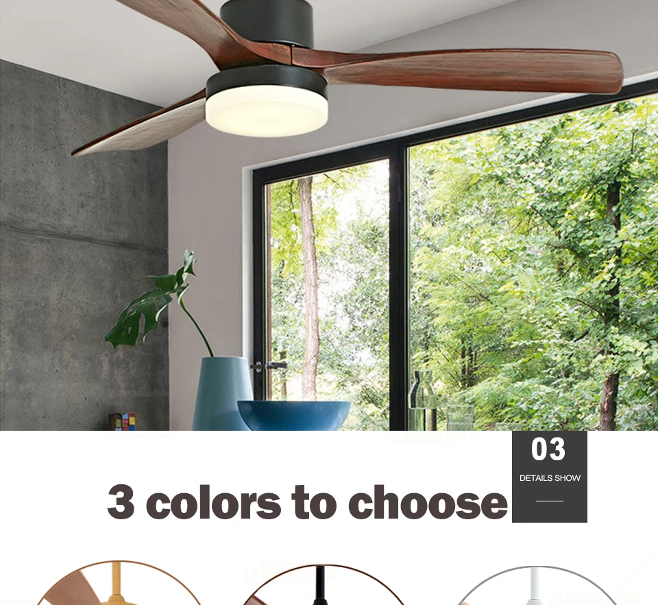 Потолочные вентиляторы 42, 48, 52 дюйма, 3 лопасти, деревянный трехцветный настенный пульт дистанционного управления, креативный деревянный вентилятор 220 В для гостиной