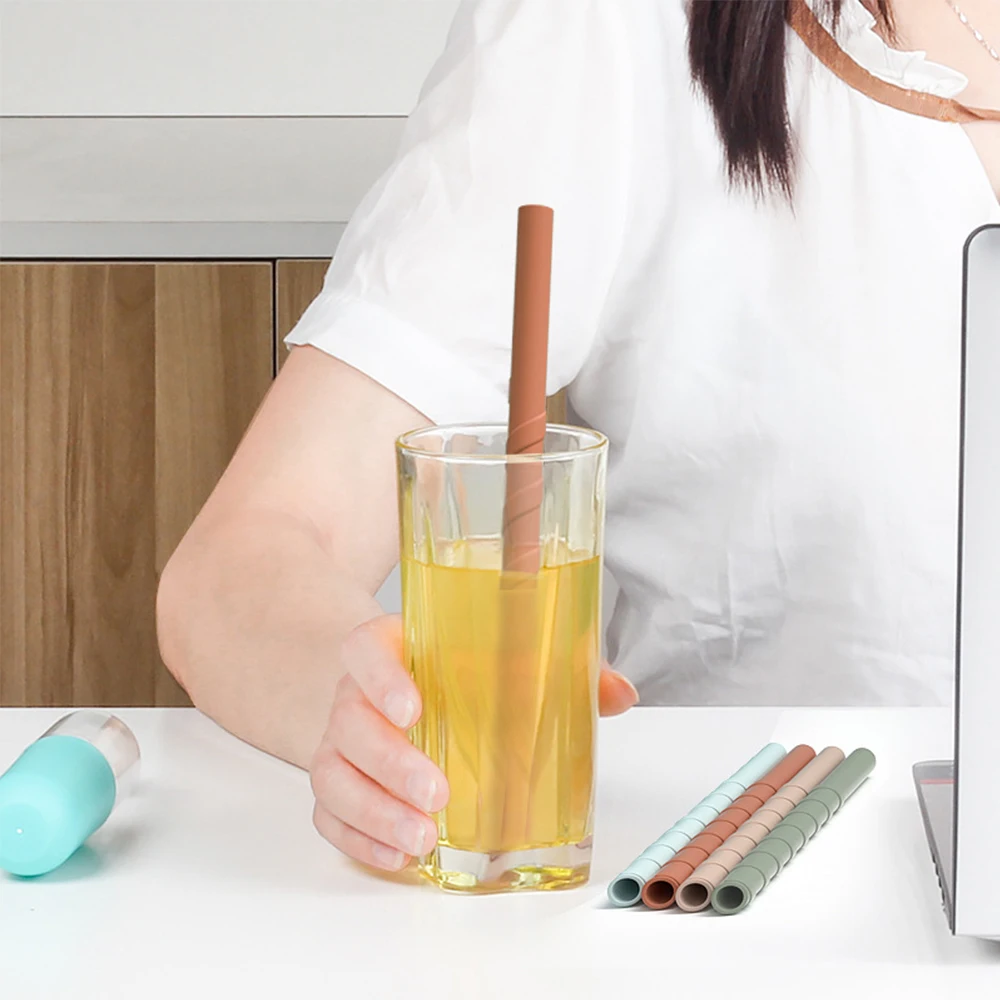 6pcs Reusable Silicone Straws Flexible Straw With 2 Cleaning Brushes Foldable Drinking Straws Party Kitchen Supplies Bar Tools