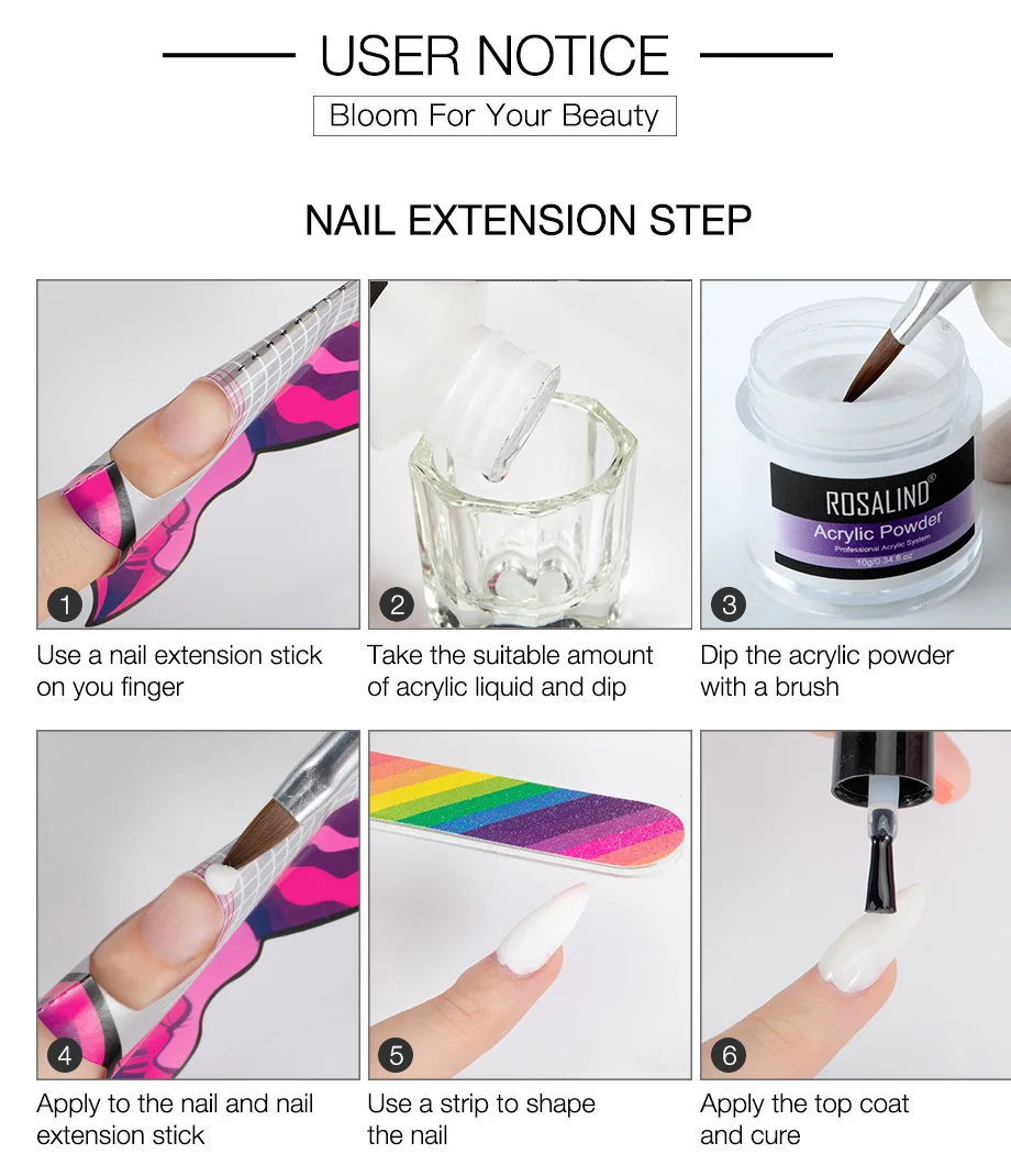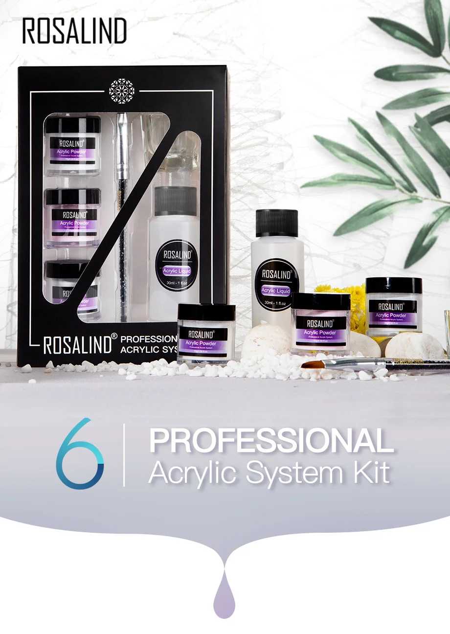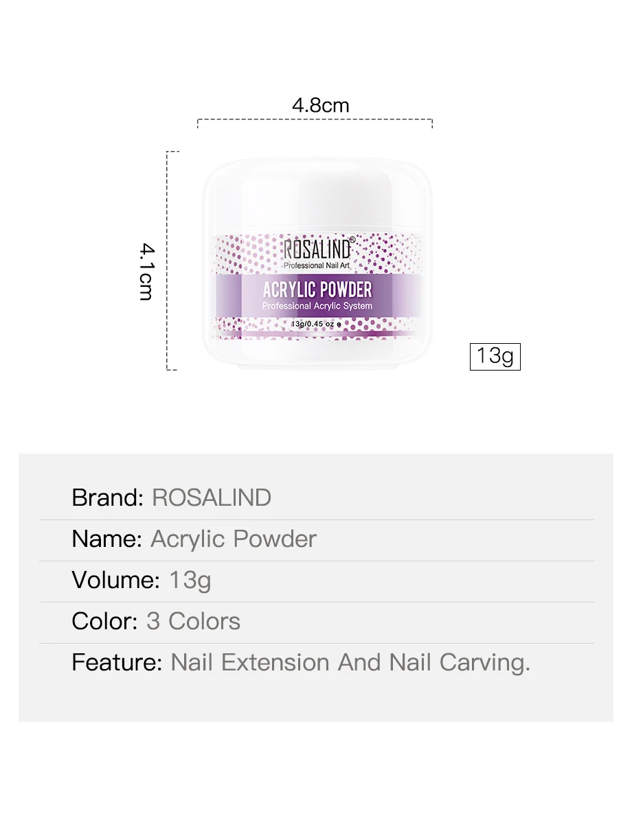 ROSALIND акриловый порошок, кристальное моделирующее средство для типсов для дизайна ногтей, прозрачный акриловый порошок для ногтей, маникюр, 10 г, розовый, белый, прозрачный