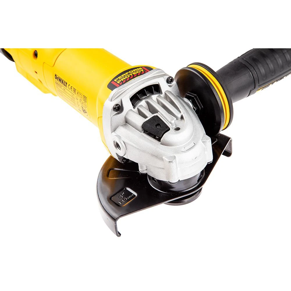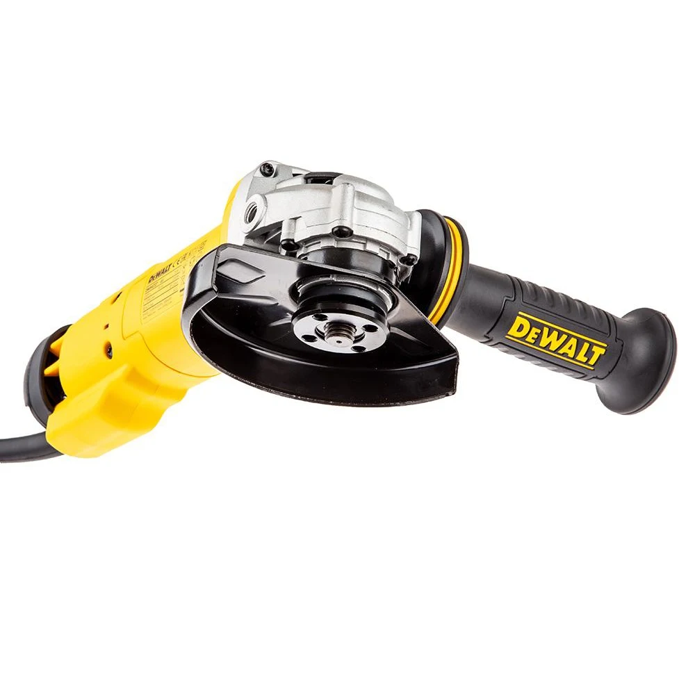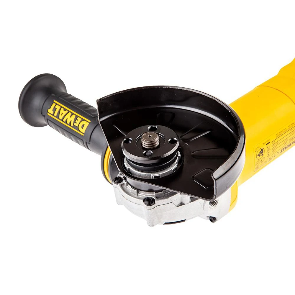 Угловая шлифмашина Dewalt DWE4227 предназначена для резки и шлифовки металлических изделий. Дополнительная антивибрационная рукоятка способствует комфортной работе, снижая утомляемость пользователя. Для установки кожуха не требуются дополнительные приспос