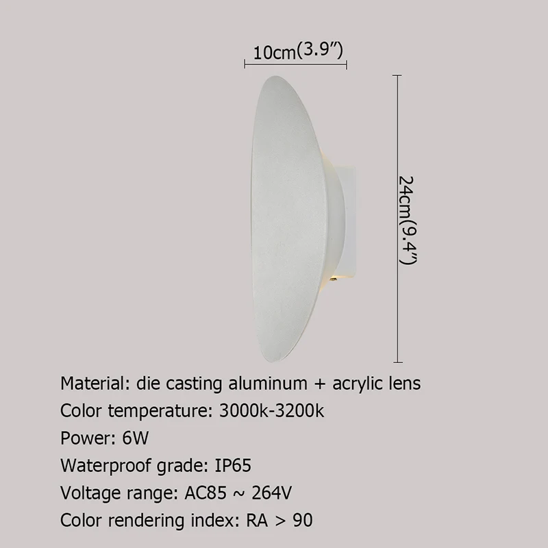 Часто задаваемые вопросы В1: Клиент: Что делать, если мы не получим товар в течение согласованного времени? Магазин: мы полностью вам компенсируем. В2: Клиент: Что мне делать? Если он поврежден во время транспортировки? Магазин: во-первых, эта вероятность очень низкая, и во-вторых, мы компенсируем Вам в полном объеме, если вы действительно столкнулись с повреждением во время транспортировки, пожалуйста, будьте уверены. Материал: литье под давлением алюминий + акриловые линзы Цветовая температура: 3000k-3200k Мощность: 6 Вт Класс водонепроницаемости: IP65 Диапазон напряжения: AC85-264V Индекс цветопередачи: RA > 90 Применимые сцены: патио, крыльцо, коридор, балкон, внутренний двор, вилла, дуплекс и т. д. Гарантия: 3 года Если у вас есть какие-либо вопросы, пожалуйста, не стесняйтесь оставить нам сообщение, и мы вернемся к вам в течение 24 часов.