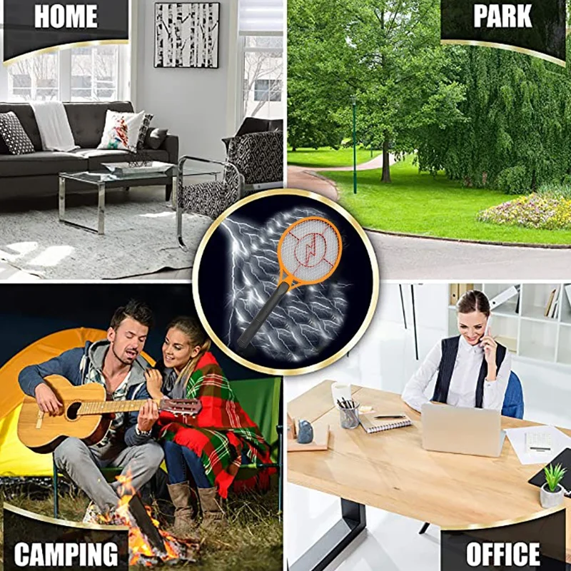 Использование одной рукой: с формой теннисной ракетки, вы можете легко качать противомоскитная ракетка одной рукой к насекомым. Удерживайте кнопку на ручке ракетки, чтобы активировать проволочную сетку. Любой комаров или мух, которые вы ловите, будет гальванизирован и упадет на землю