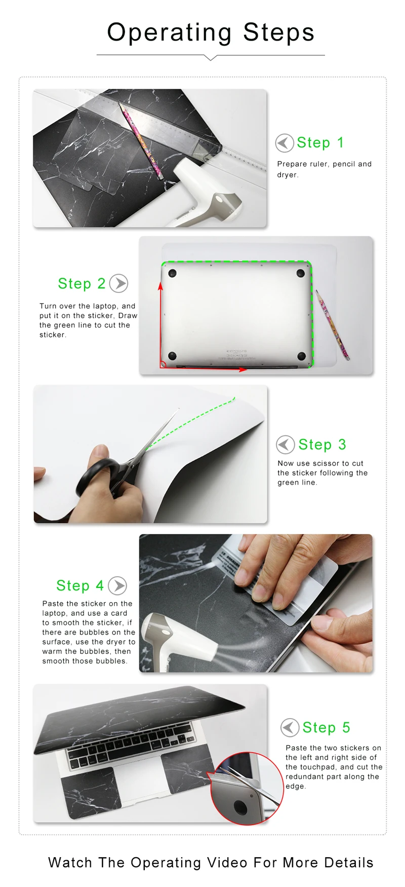 Эта виниловая наклейка обеспечивает защиту от ежедневных царапин, пыли, масла, воды и отпечатков пальцев. Остановите ваш MacBook от старения. Обновите косметический вид вашего mac. Будьте элегантны и особенно отличаются от других. Он изготовлен из специального клейкого материала, очень легко устанавливается и снимается