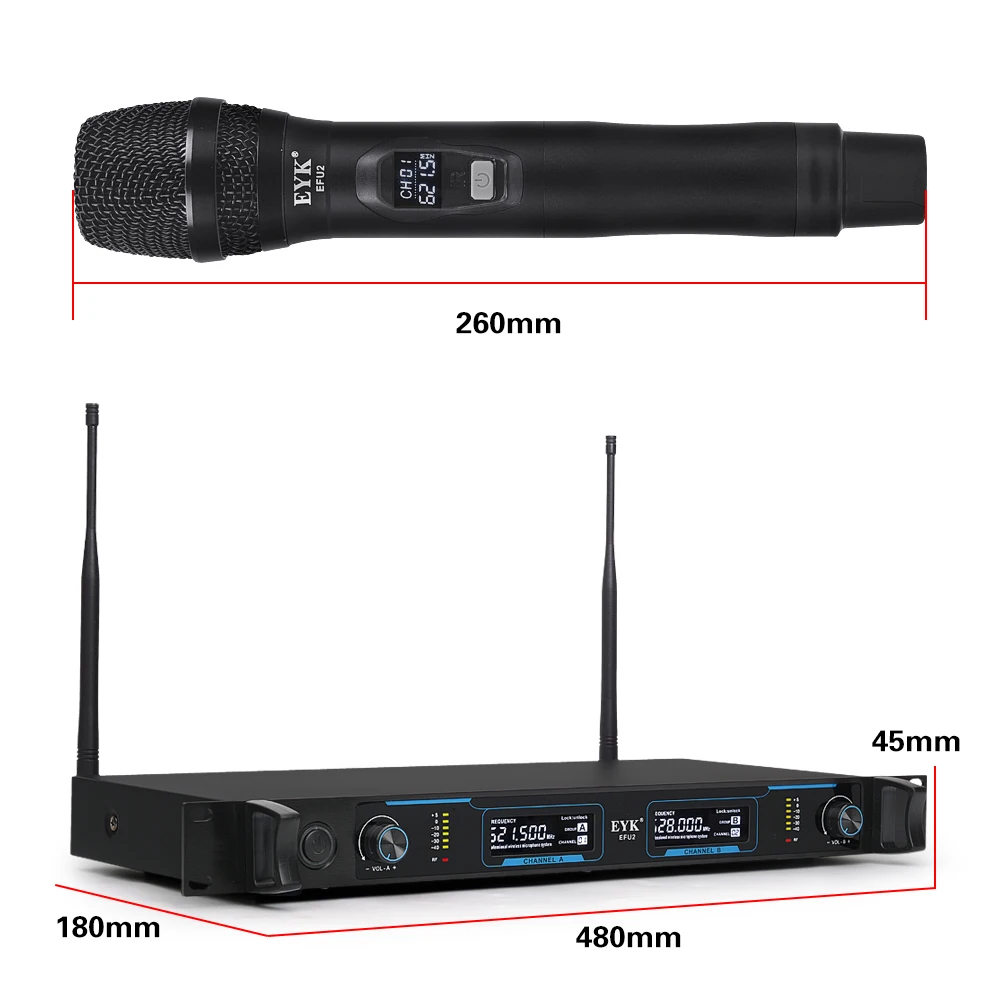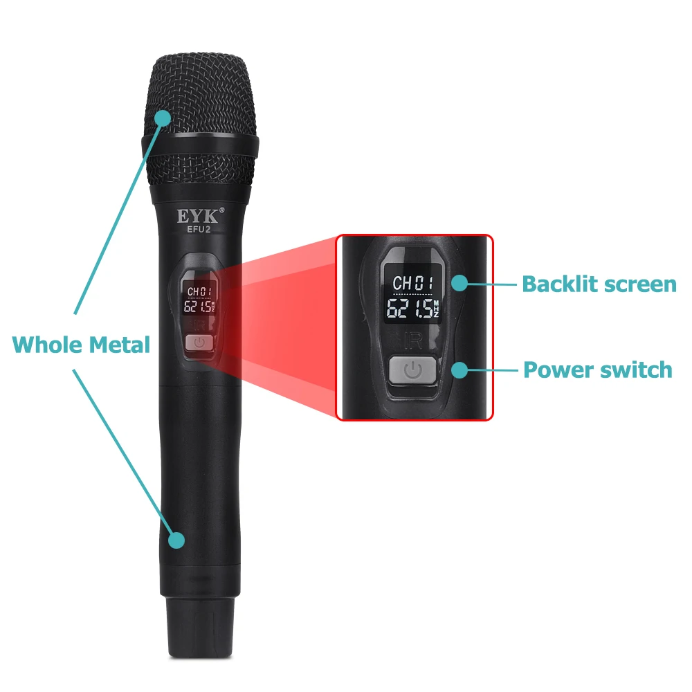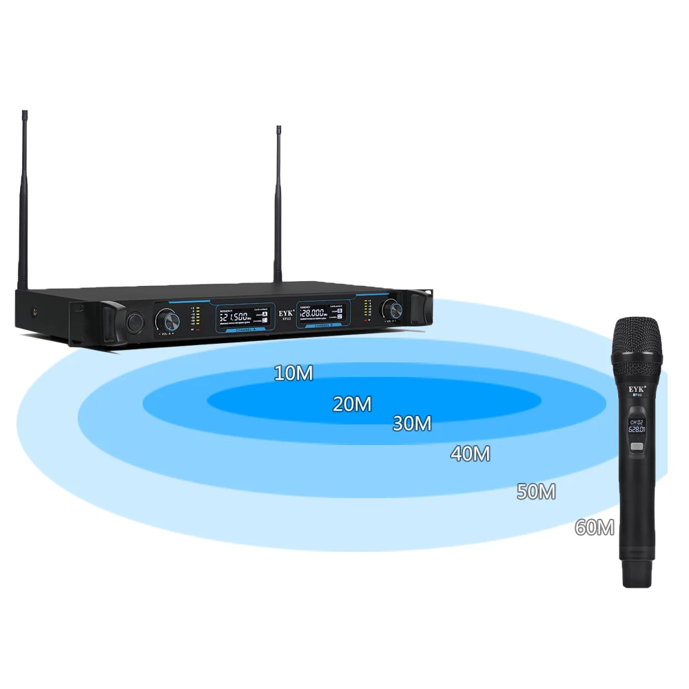Профессиональная Беспроводная микрофонная система UHF с 2 металлическими ручками. Не только для дома, но и подходит для бара, ресторана или вечерние шоу.