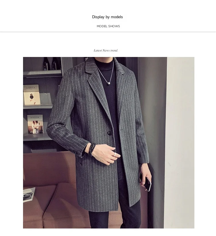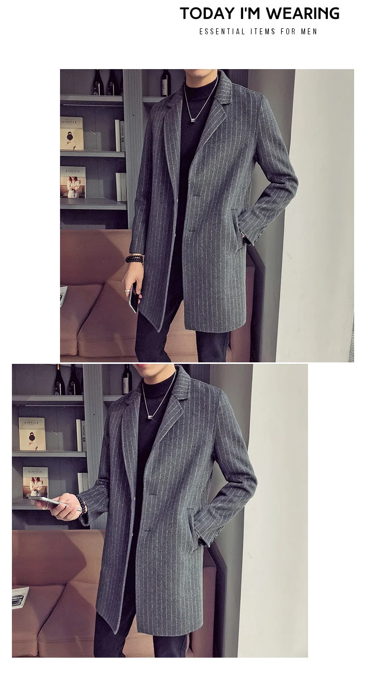 Отзывы о Мужское пальто в Корейском стиле полосатый шерстяной мужской Тренч Мужская