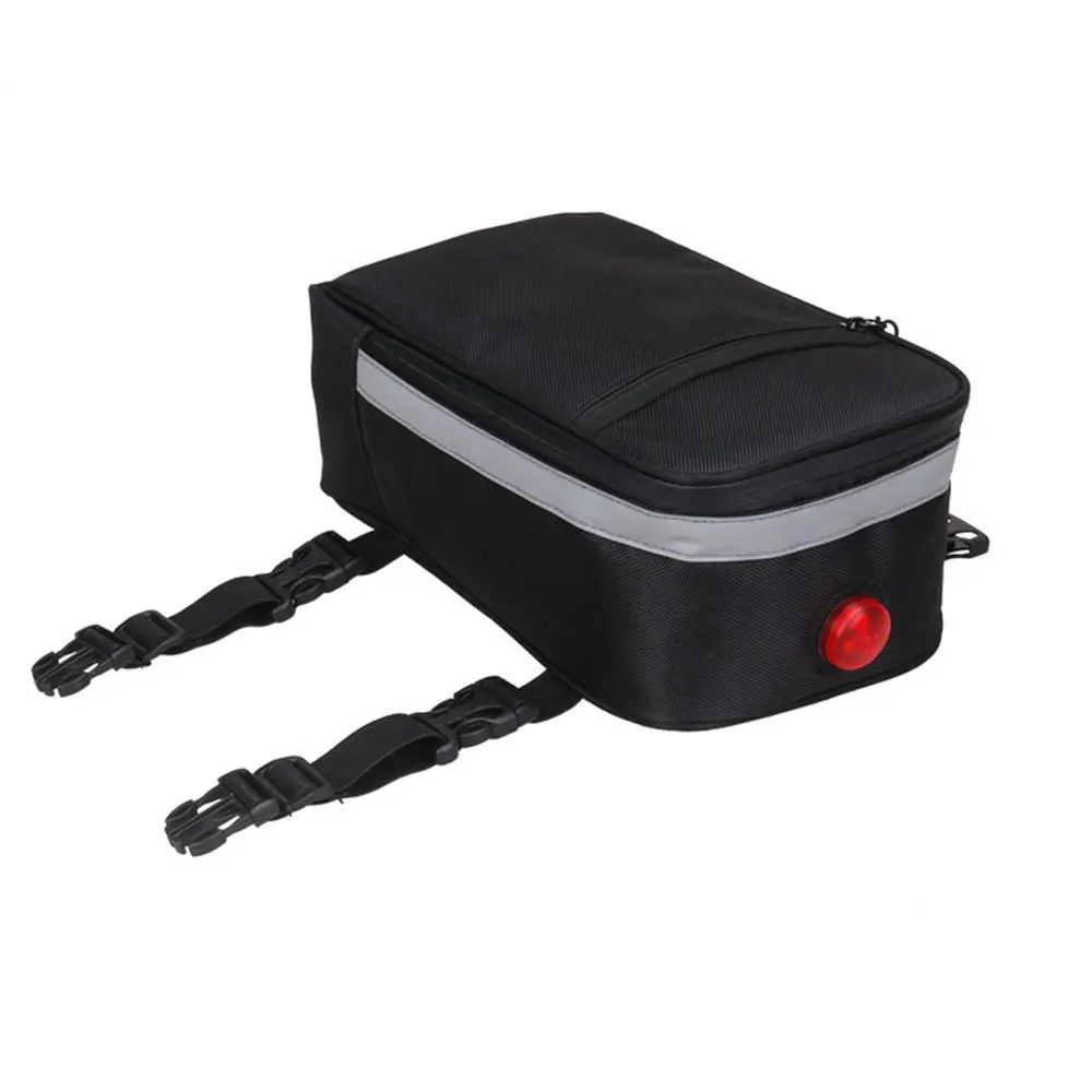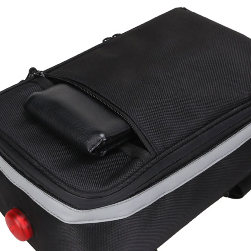 Четыре стены сумки для велосипедного багажника имеют утолщенный дизайн, который может обеспечить подушку, чтобы уменьшить шок при езде по неровной дороге, есть дизайн освещения в сумке, требуется Кнопка 2032 батареи (не входит в комплект). Что позволяет вам ездить более безопасно.