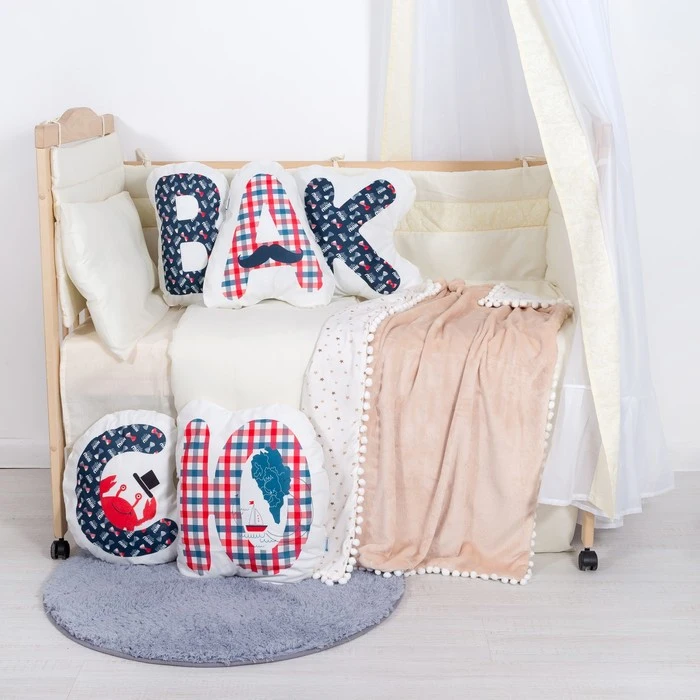 Подушка "Крошка Я" А, 40х35 см, синий, велюр, 100% п/э 4125439