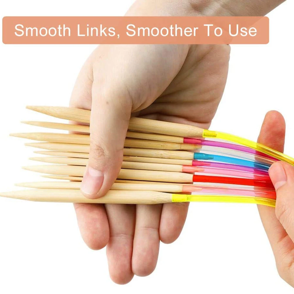 Набор круглых вязальных игл: Изготовлен из бамбука, соединение игл и кабелей гладкое и прочное. Не ломаются легко или пряжа, как другие продукты