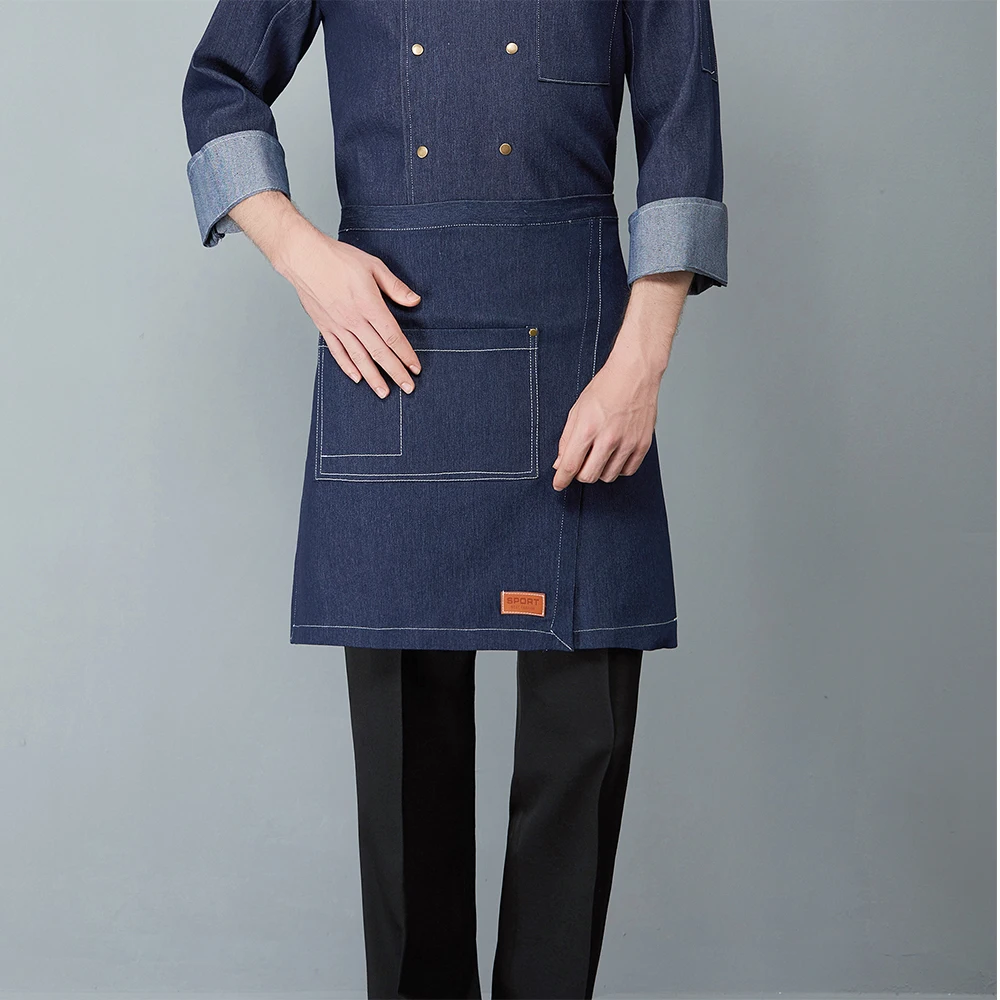 Отзывы о Джинсовый Короткий Фартук унисекс с боковым карманом для ресторана пекарни