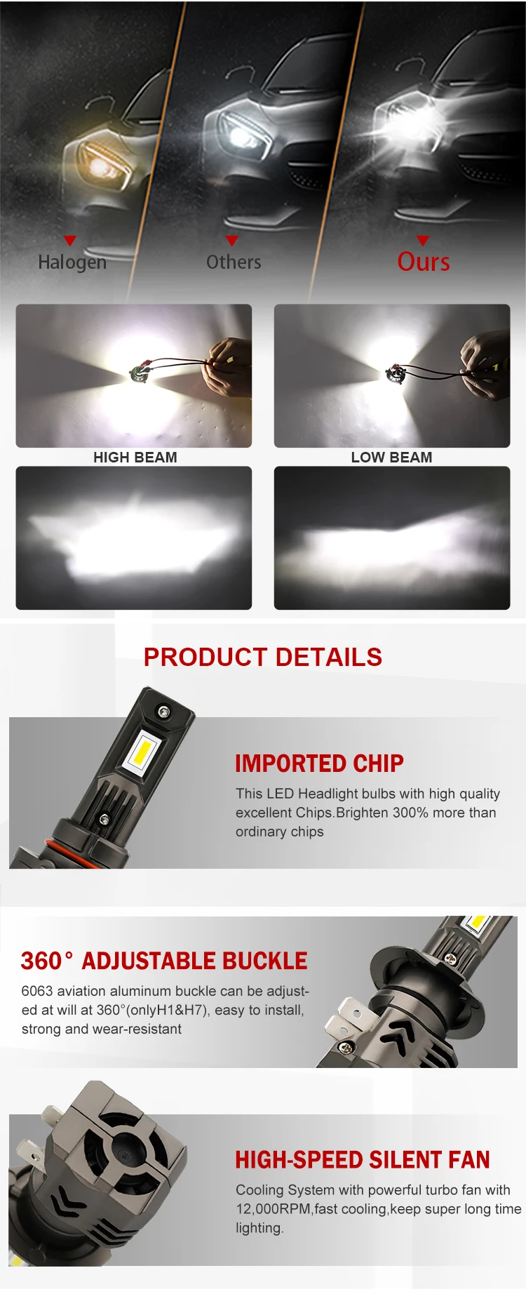 Посылка: одна пара. Светильник: 48 Вт. Люмен: 16000LM. Уровень IP: IP 68 Напряжение: 12-24 В постоянного тока Цветовая температура: 6000K-6500K (белый); 4300K (теплый белый); 3000K (желтый). Срок службы: >30 000 часов Рабочая температура: (-40, + 80) Материал по Цельсию: авиационный алюминиевый профиль 6063 Canbus: без ошибок для 90% автомобилей. (Не подходит для специальных автомобилей, например: немецкие автомобили) Электромагнитная схема: без радиопомех Тип штекера: однолучевой: H1, H3, H7, H8/H9/H11, HB3(9005), HB4(9006). Дальний/ближний свет: H4(9003)(HB2). Адаптер: Наши лампы являются стандартными и разъемами, пожалуйста, покупайте адаптеры в нашем магазине, если вам нужны адаптеры. (для некоторых автомобилей могут нужны адаптеры H7) Canbus: без ошибок для 95% автомобилей. (Не подходит для специальных автомобилей, например: не для всех немецких автомобилей, и не для сиденья, не для Volvo, не для Scania и так далее...) Так что для большинство автомобилей не нужно покупать внешний canbus.