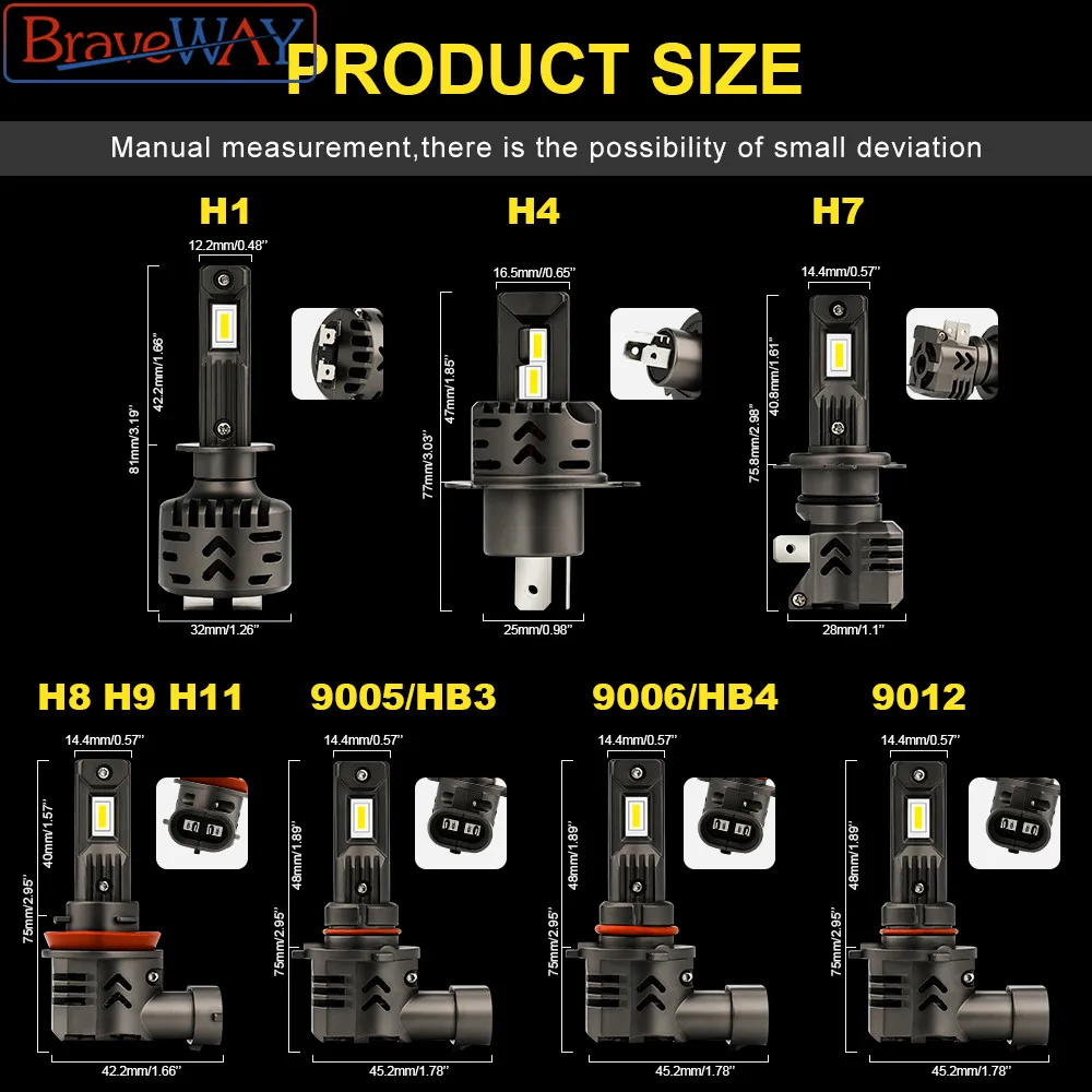 Отзывы о Автомобильные светодиодные лампы BravyWay 48 Вт мини-ТИНТ для фар H7 H11 H1 H3 9005 9006 Hb3 Hb4 12 В
