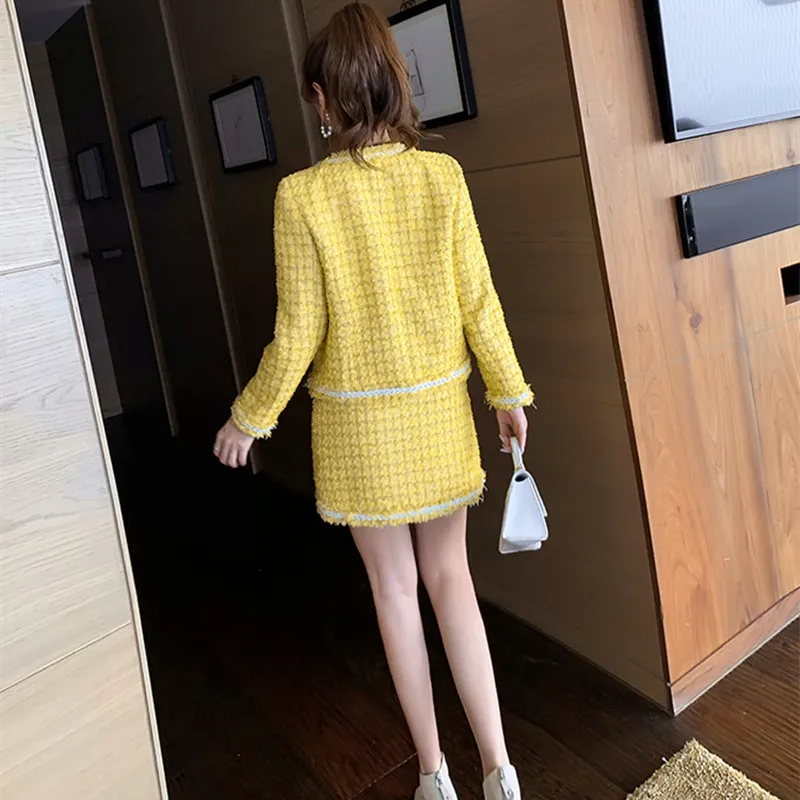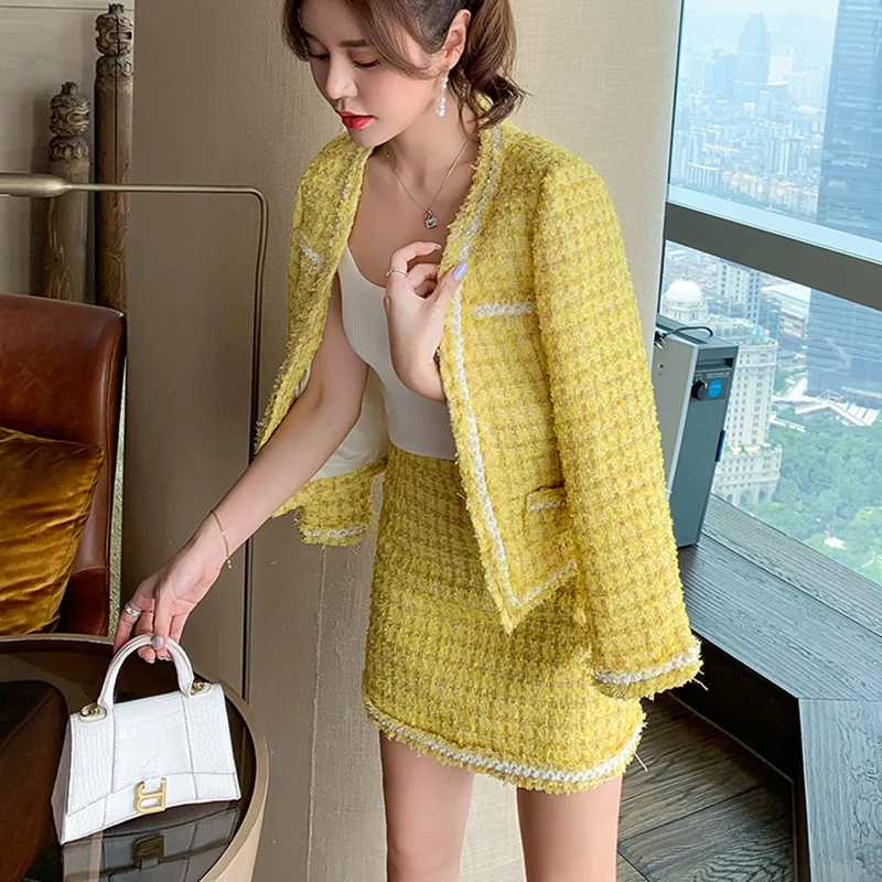 Отзывы о Модный желтый в клетку комплект из 2 предметов 2020 осень-зима женские туфли ручной