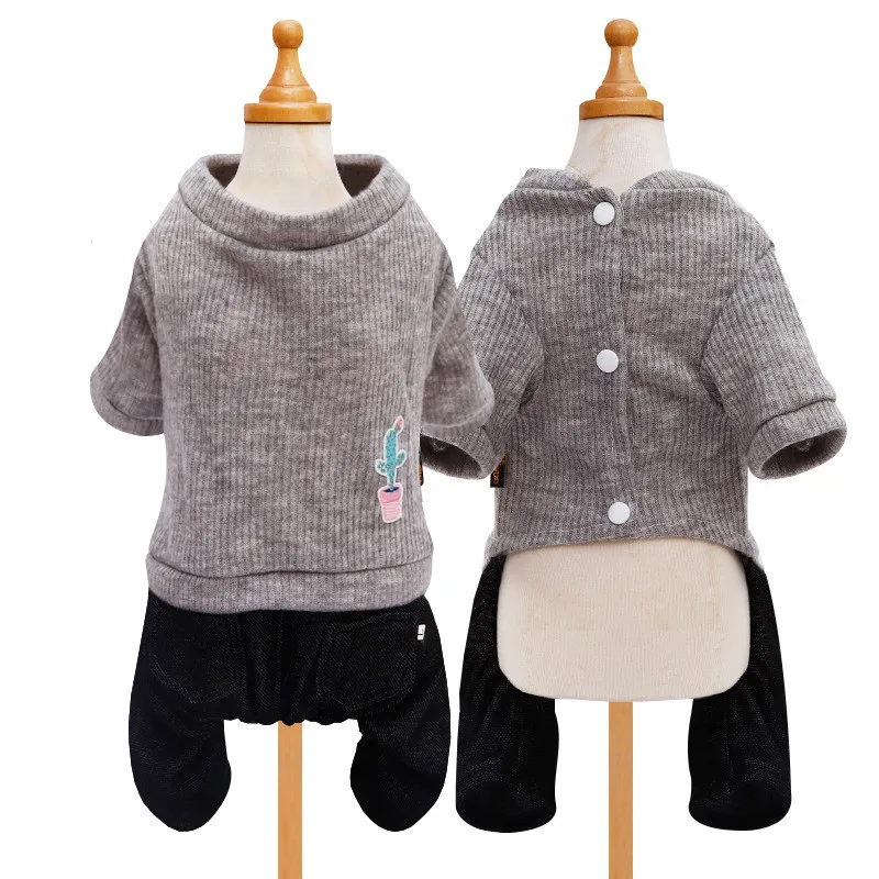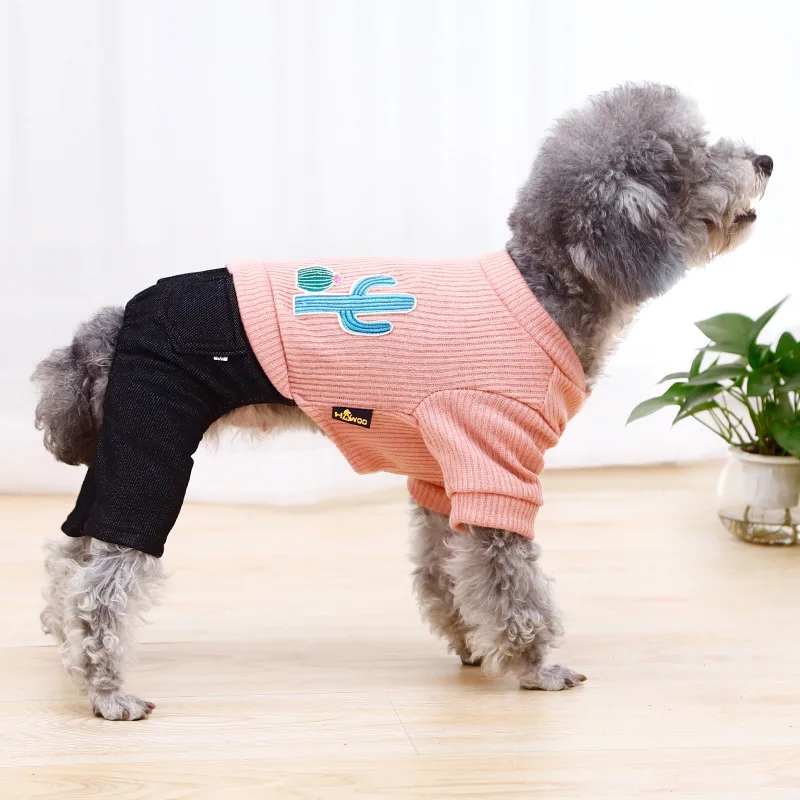 Отзывы о 2020 Autumn Winter Pet Clothes Striped Knitted Cactus Jeans Cat Jumpsuits Rompers Denim Suit For Puppy Small Dogs | Дом и сад