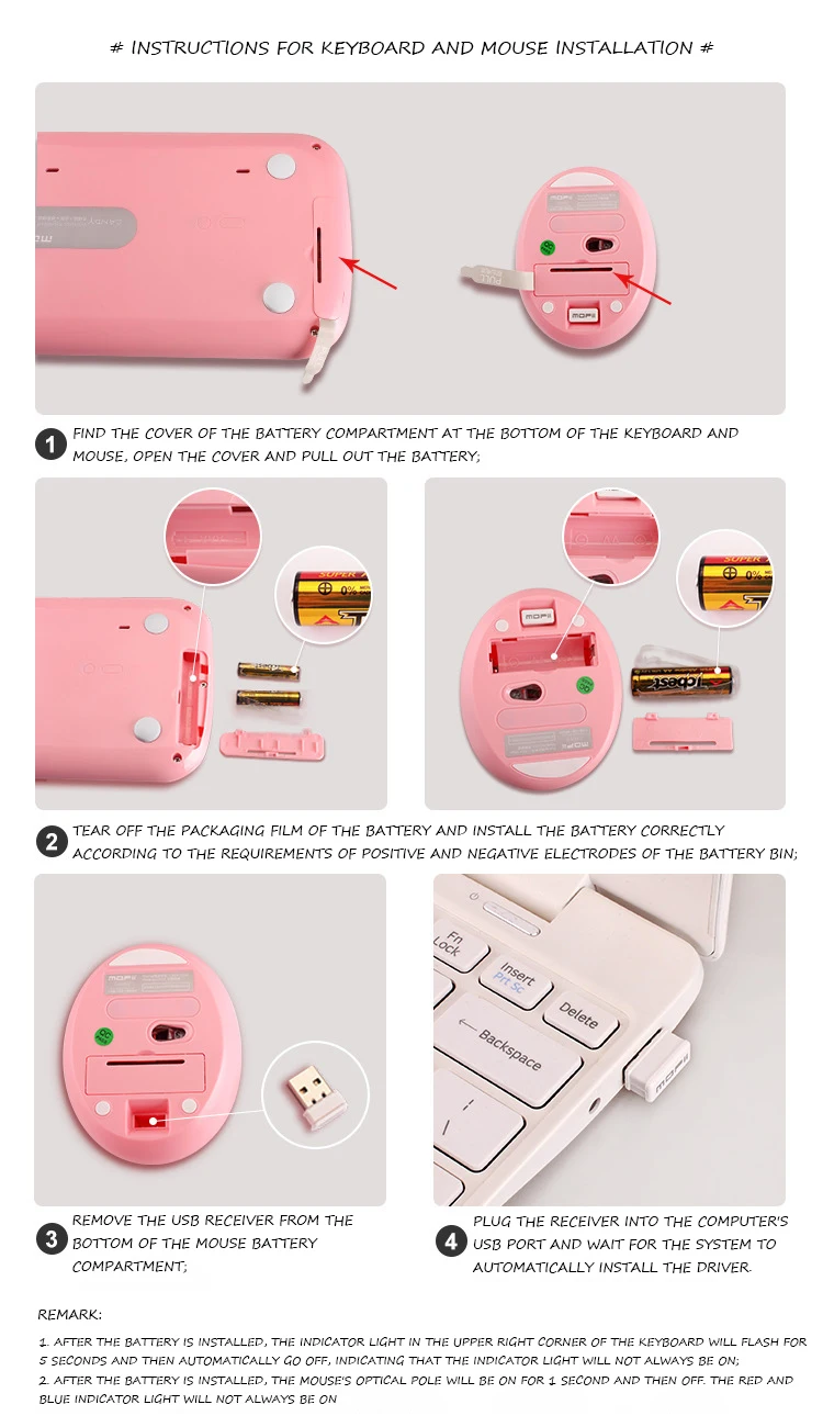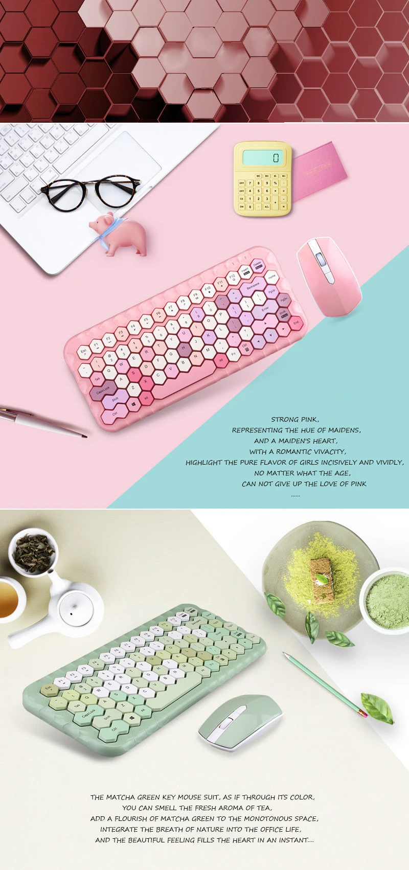 Отзывы о Беспроводная клавиатура и мышь набор из розовой клавиатуры мыши с сердечками для