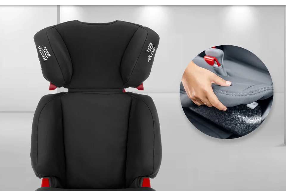 The easily adjustable headrest, equipped with a guide for the regular belt is designed specifically for older children and helps correctly fix the child and chair in the car. The headrest can be easily installed in the correct position (slightly above the shoulders of the child) with one hand, even when the child is sitting in the chair.
