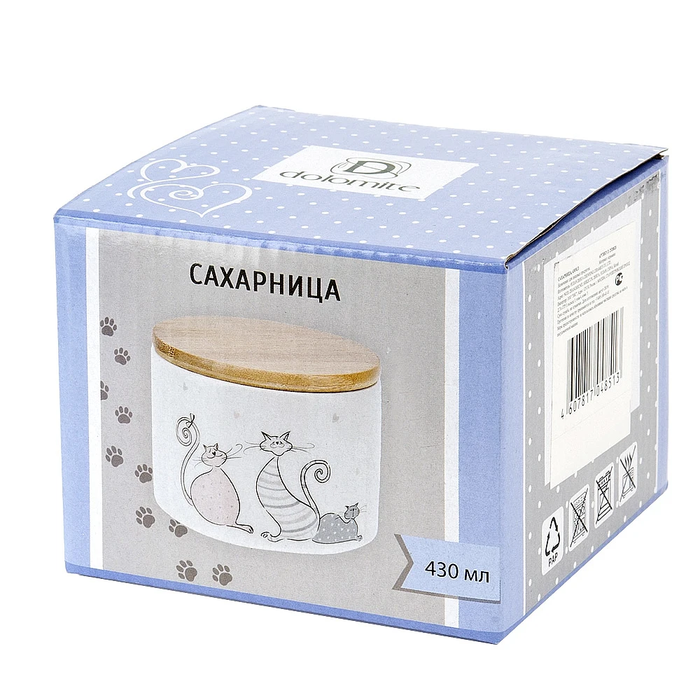 Сахарница (деревянная крышка) "Усатое счастье" d=10,5см. h=8см. v=430мл.