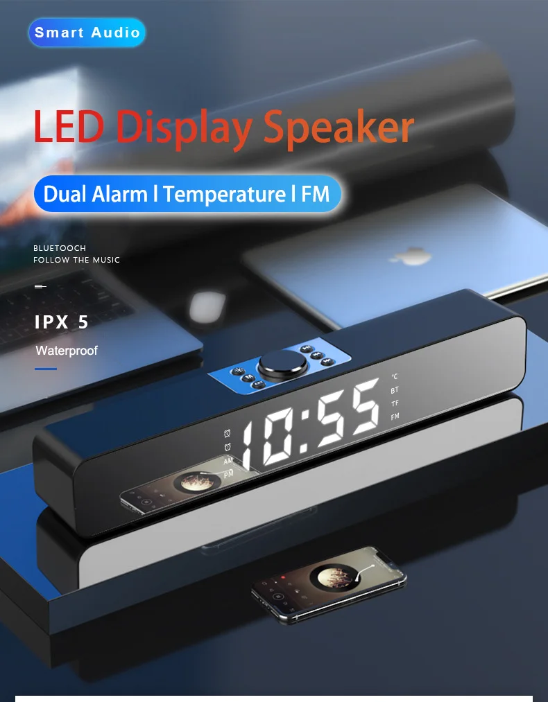Отзывы о home theater surround sound music Wireless bluetooth speaker player for PC TV computer LED bar alarm clock AUX | Электроника