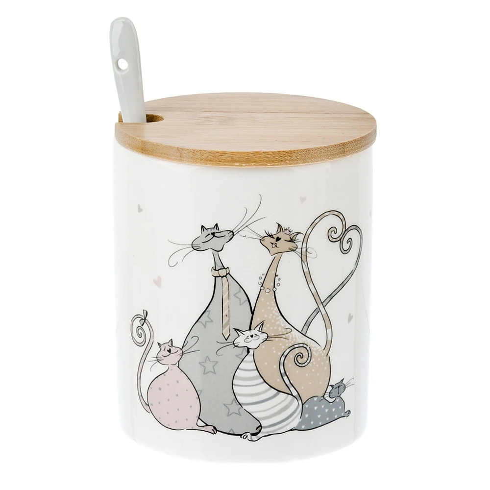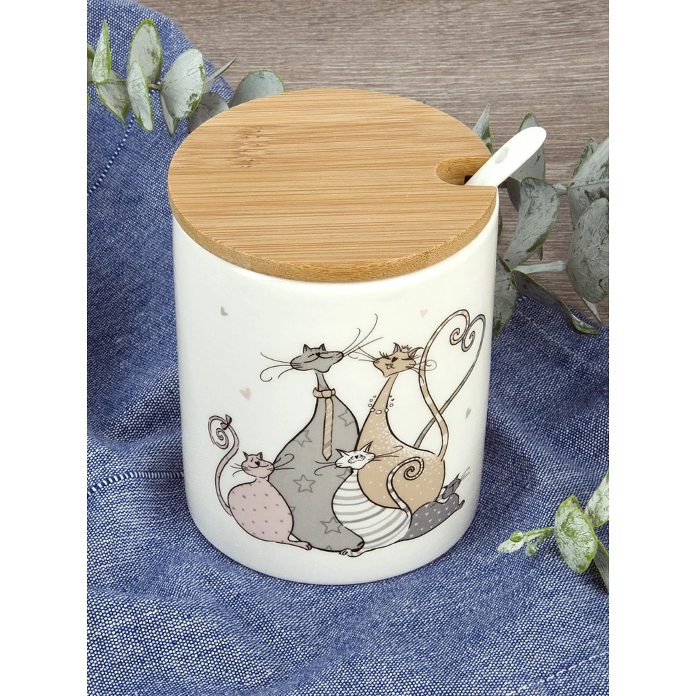 Отзывы о Сахарница с ложкой (деревянная крышка) "Усатое счастье" d=8см. h=10 5см. v=350мл. | Дом