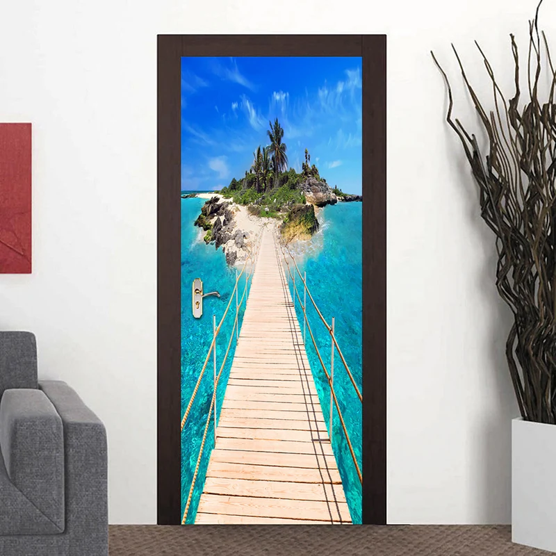 Отзывы о 3D наклейка на дверь морской остров Настенная Наклейка сделай сам самоклеящаяся
