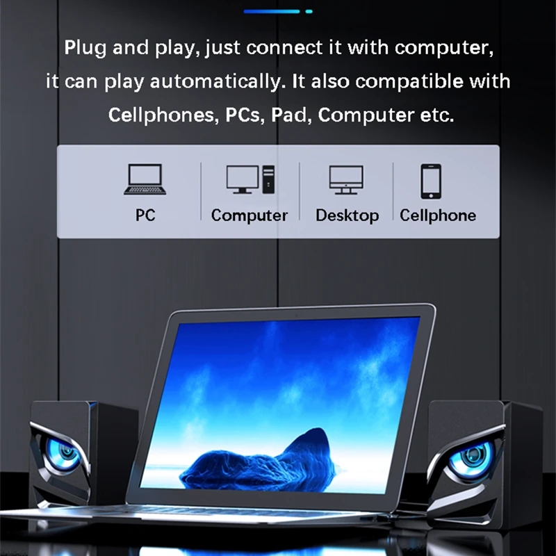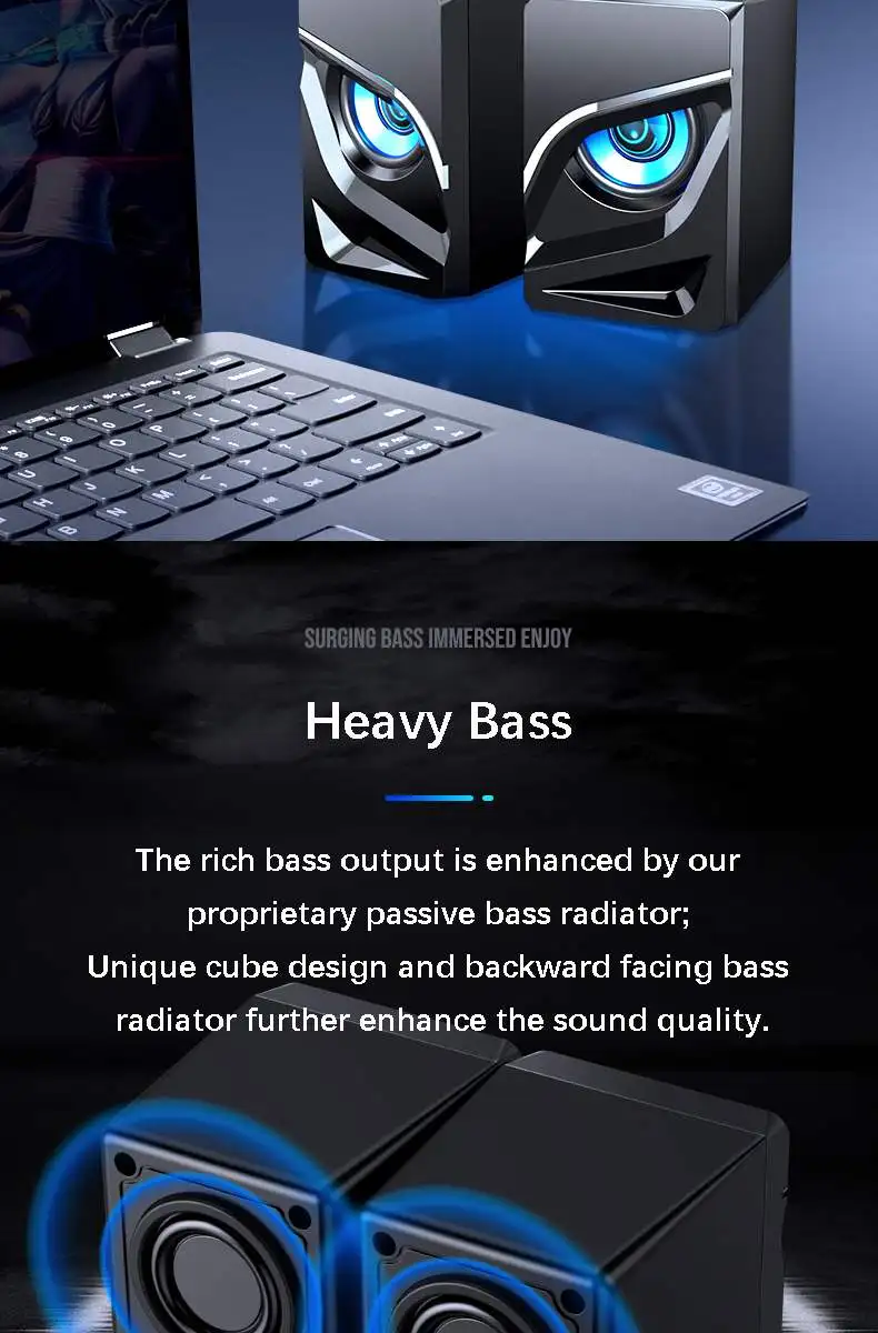 ПК игровые колонки, 2,0 канальный стерео настольный компьютер звуковая панель стереоТехнические характеристики: