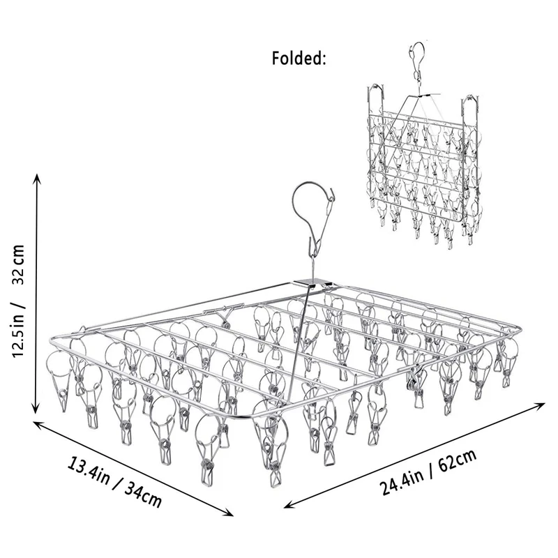 SPACE SAVER & COLLAPSIBLE: Hang up to 52 small items in compact space for multipurpose drying or storage. The orientation of the hanger can be change freely, pinches are alternately arrange, and breathability is very good. Collapse flat when not in use for easy storage and quick non-tangle frustration free setup.