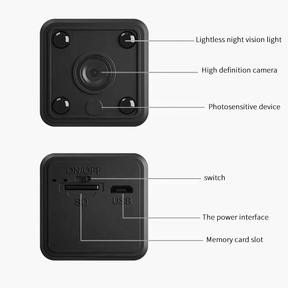 Модель: X6 Объем памяти: TF карта Диапазон пикселей: 1080P Материал корпуса: пластик Срок службы батареи: 180 минут Размер изделия: 30*30*30 мм Упаковочный лист: машина, упаковка, руководство, кабель для передачи данных, кронштейн, карточка, кард-ридер Характеристики: HD ночное видение, стабильная производительность, обнаружение движения, интеллектуальная запись, встроенный WiFi, 1080P HD, 155 ° Широкоугольная съемка
