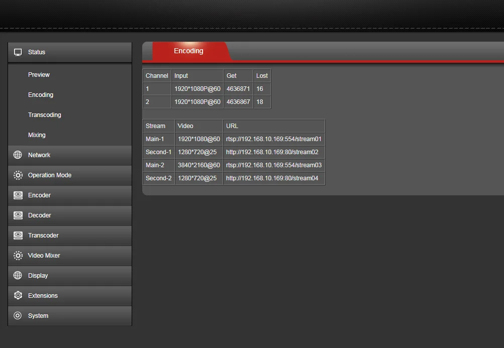 Поддержка функции транскодирования, изменение ввода/вывода IP, протокол, формат сжатия (H264-H265, H265-H264), разрешение и т. Д.