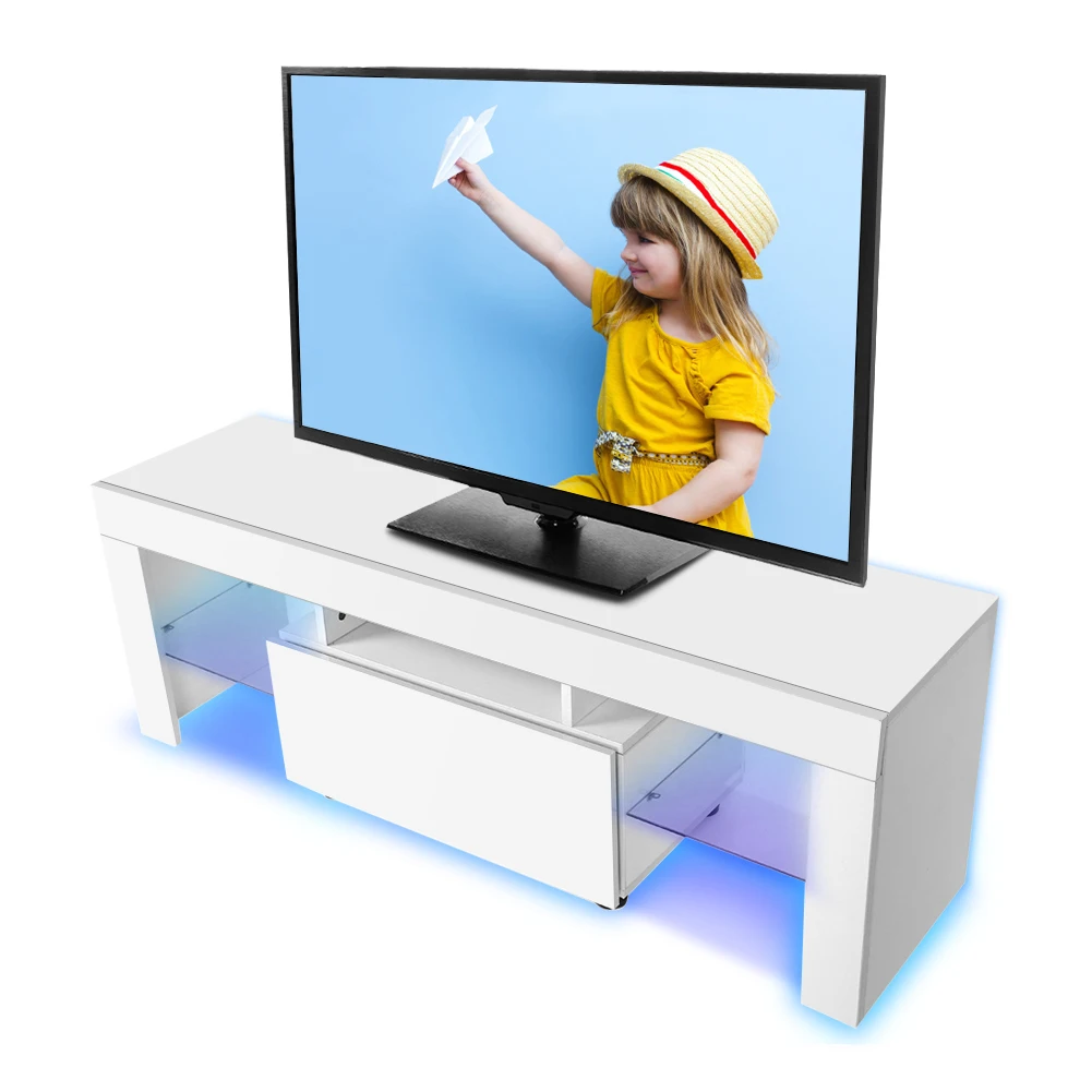 Этот шкаф для телевизора в современном стиле изготовлен из высококачественной доски с высокой плотностью и высокой нагрузкой. Помимо функции хранения, он поставляется с RGBW светодиодный полоской, вы можете прикрепить его к поверхности шкафа и изменить цвет и режим с помощью пульта дистанционного управления. Прекрасно подходит для гостиной, чтобы улучшить внутреннее пространство стиля и настроения.