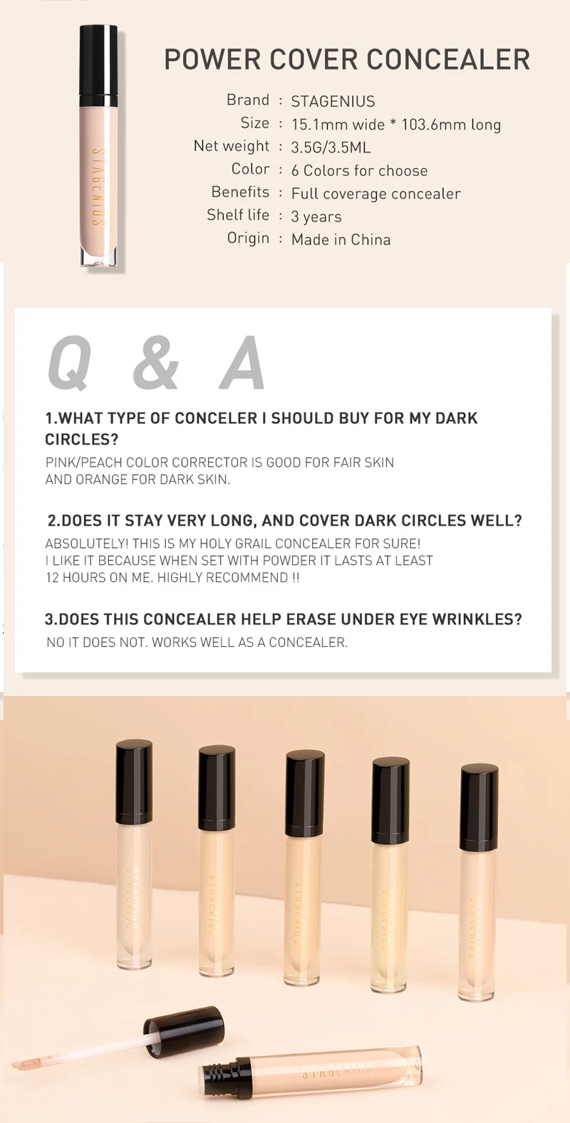 Средний и Высокий Охват светильник и гладкая текстура, которая может покрывать акне без сгибов и царапин. Водонепроницаемый, долго держится, сделает ваш макияж оставаться комфортным. Портативный, 6 цветов на выбор, эффективно осветляет кожу