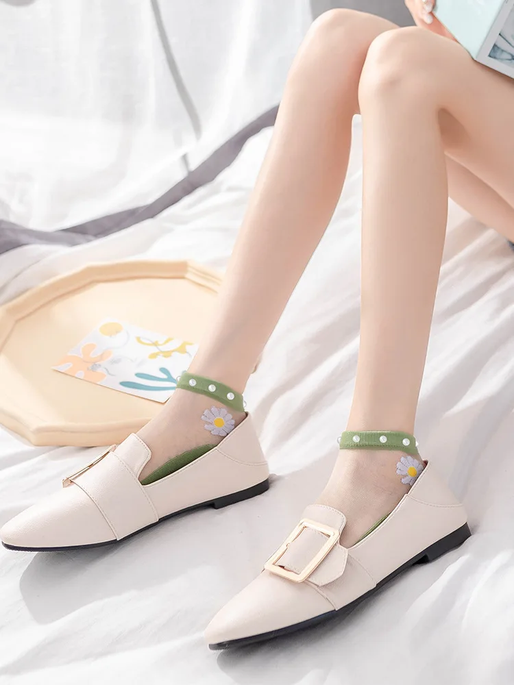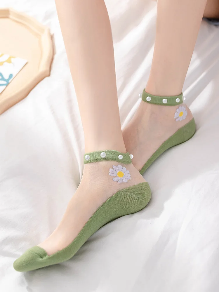 Отзывы о Дышащие тонкие носки женские летние прозрачные кружевные с жемчугом стеклянные