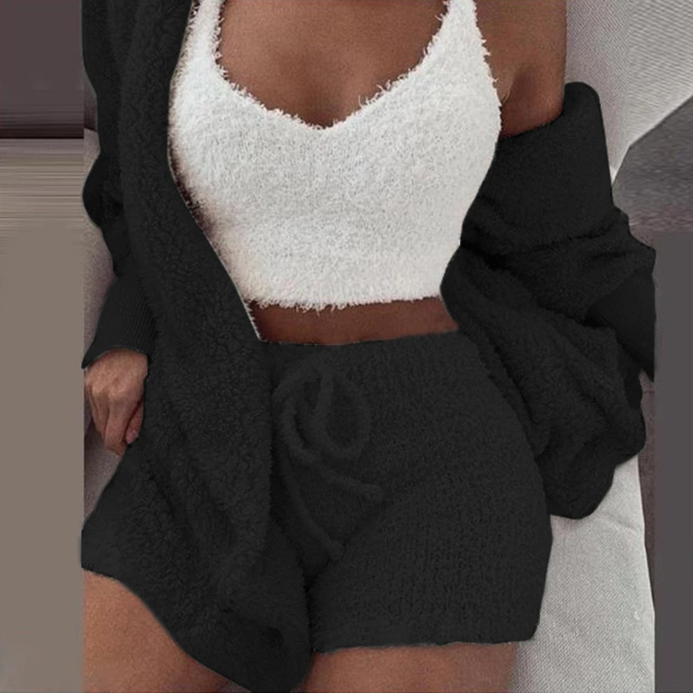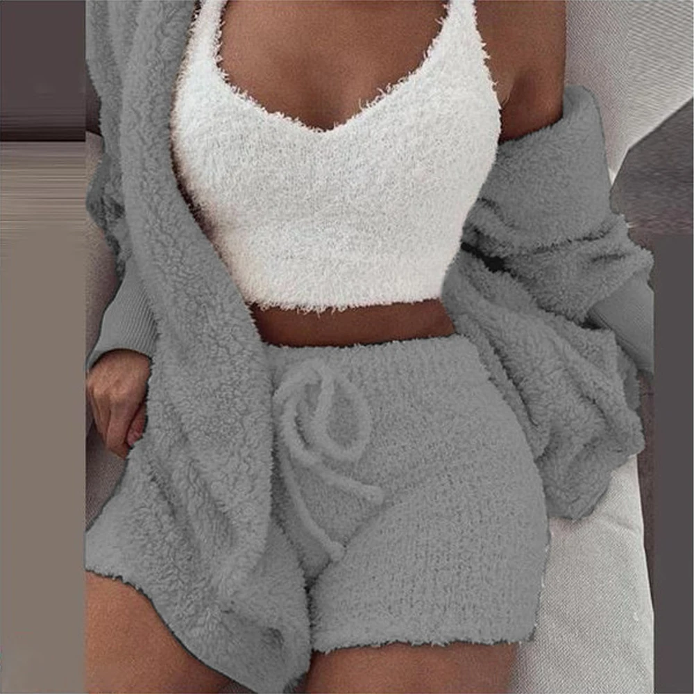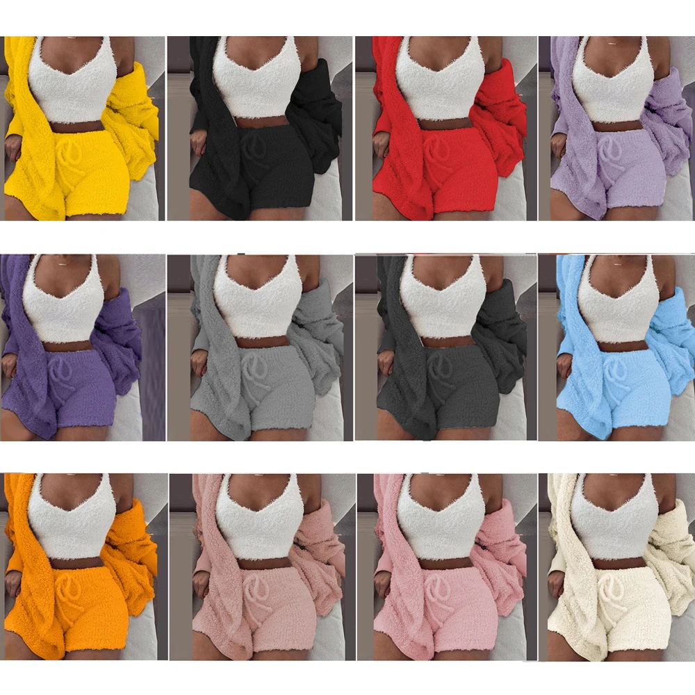 Отзывы о 2 шт./3 шт. пижамные комплекты сексуальные пушистые костюмы бархатный плюшевый