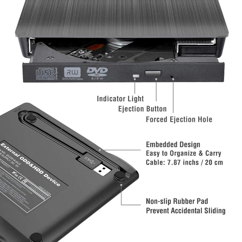 [Более быстрый USB 3,0] высокоскоростной Внешний DVD-диск USB 3,0 с 100% прочным совершенно новым dvd-загрузчиком и низким сопротивлением и защитой от помех, принесет вам быстрый и более плавный опыт. Обратная совместимость с USB 2,0, 1,0