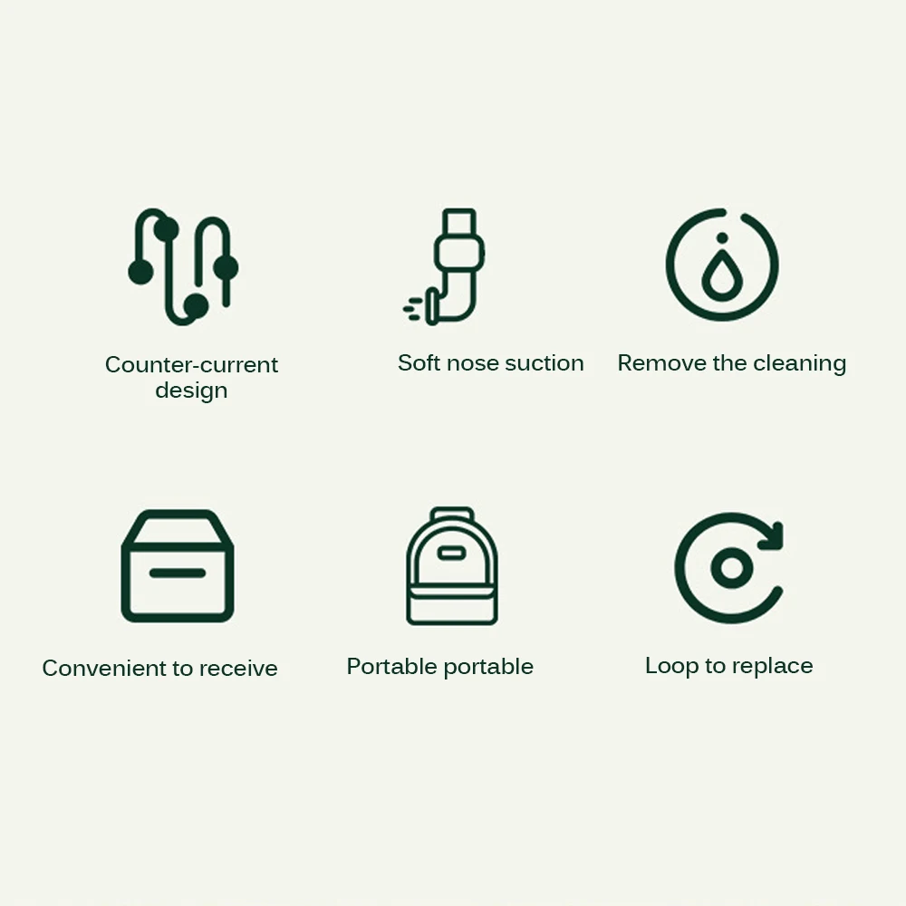 Дизайн в соответствии с эргономикой, дуга изогнута, чтобы соответствовать ноздрю. Конструкция воздушного клапана усиливает всасывание, которое имеет более сильное всасывание и лучшее уплотнение.