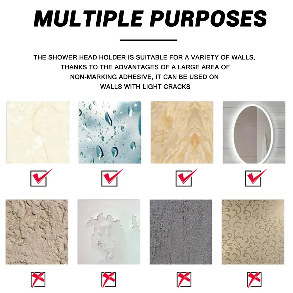 * 2. Водонепроницаемый и прочный: кронштейн для душевой головки имеет сильную адгезию и является водонепроницаемым и влагозащищенным.