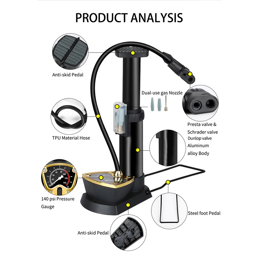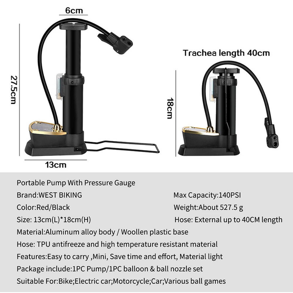 Велосипедный ножной насос с барометром высокого давления портативный насос для горного велосипеда, баскетбольный электрический велосипедный насос