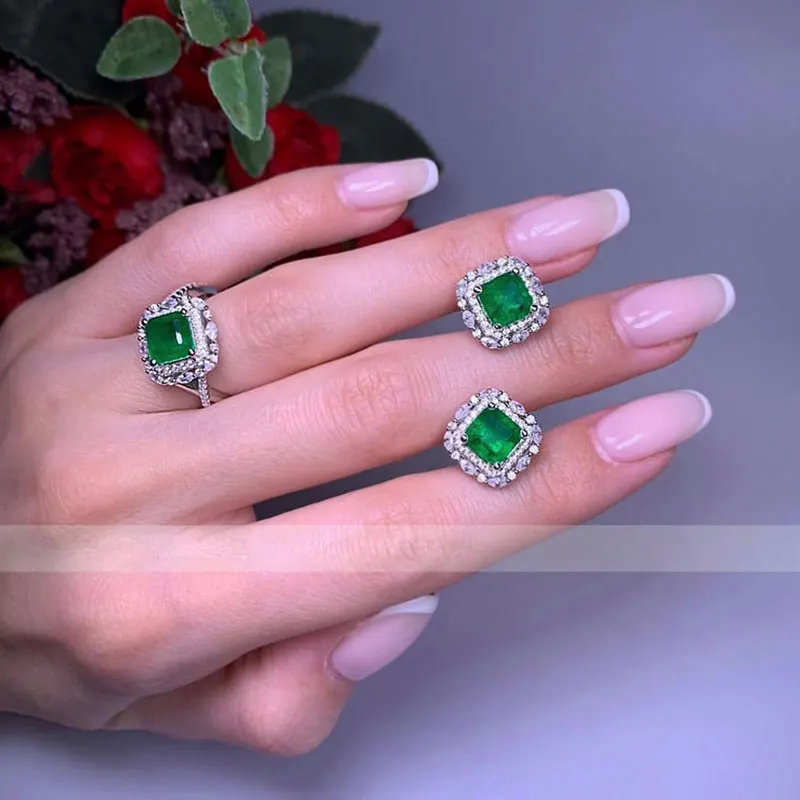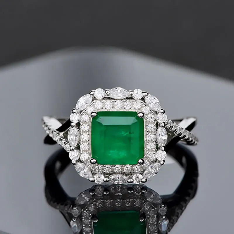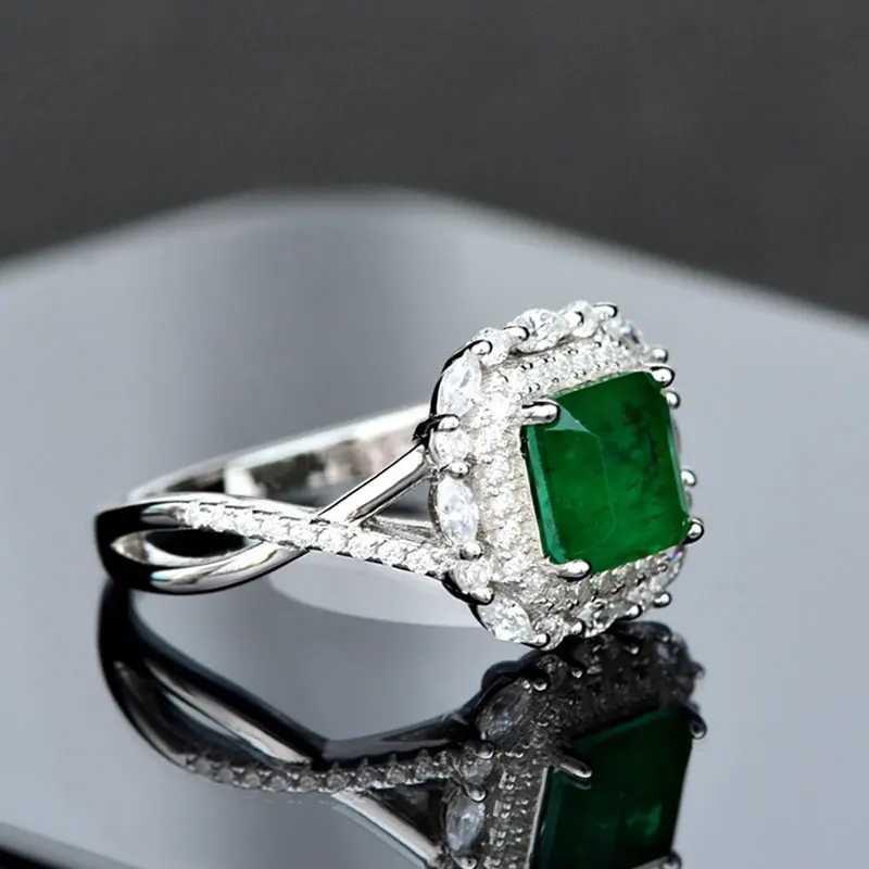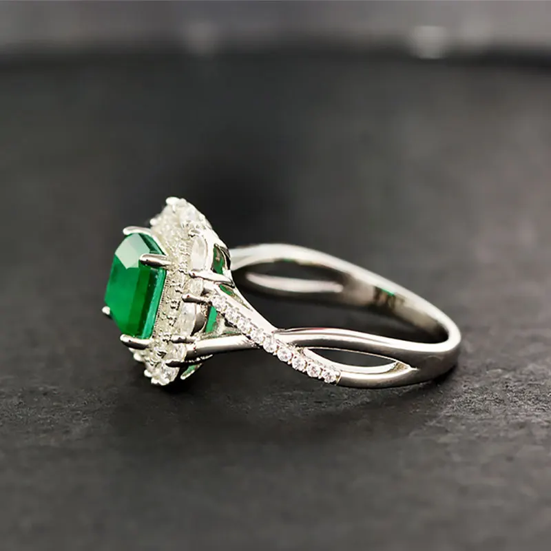 Отзывы о Женское Обручальное кольцо с изумрудным ореолом и родиевым покрытием винтажное