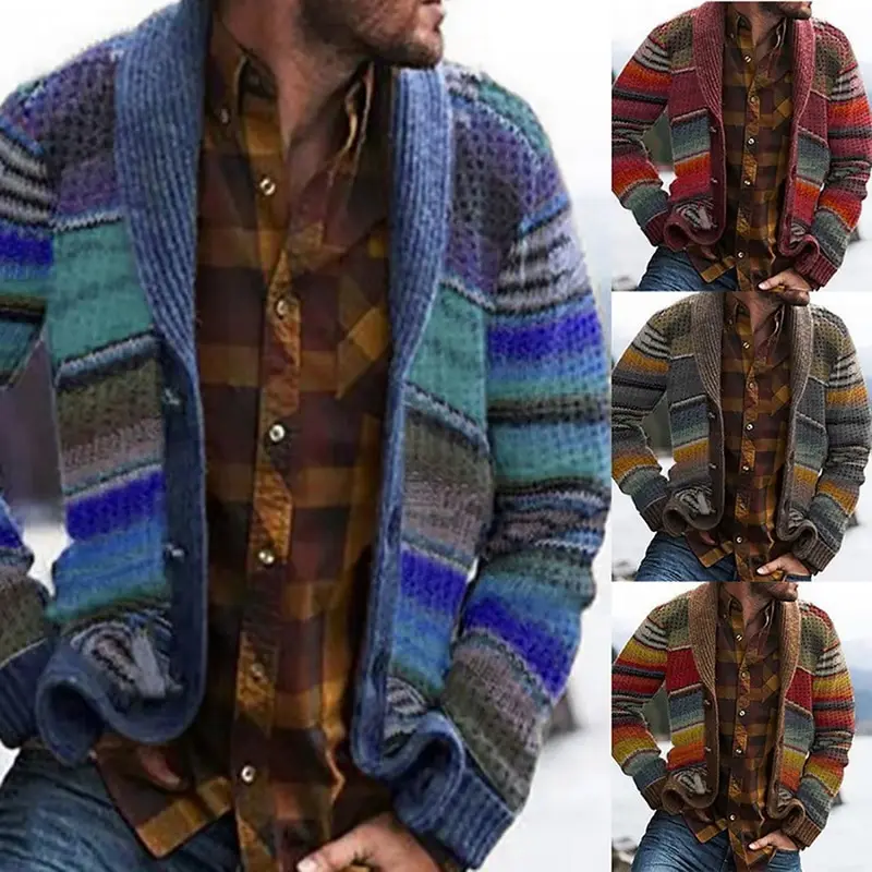 Отзывы о Мужской винтажный кардиган в полоску повседневный Свободный с длинными рукавами
