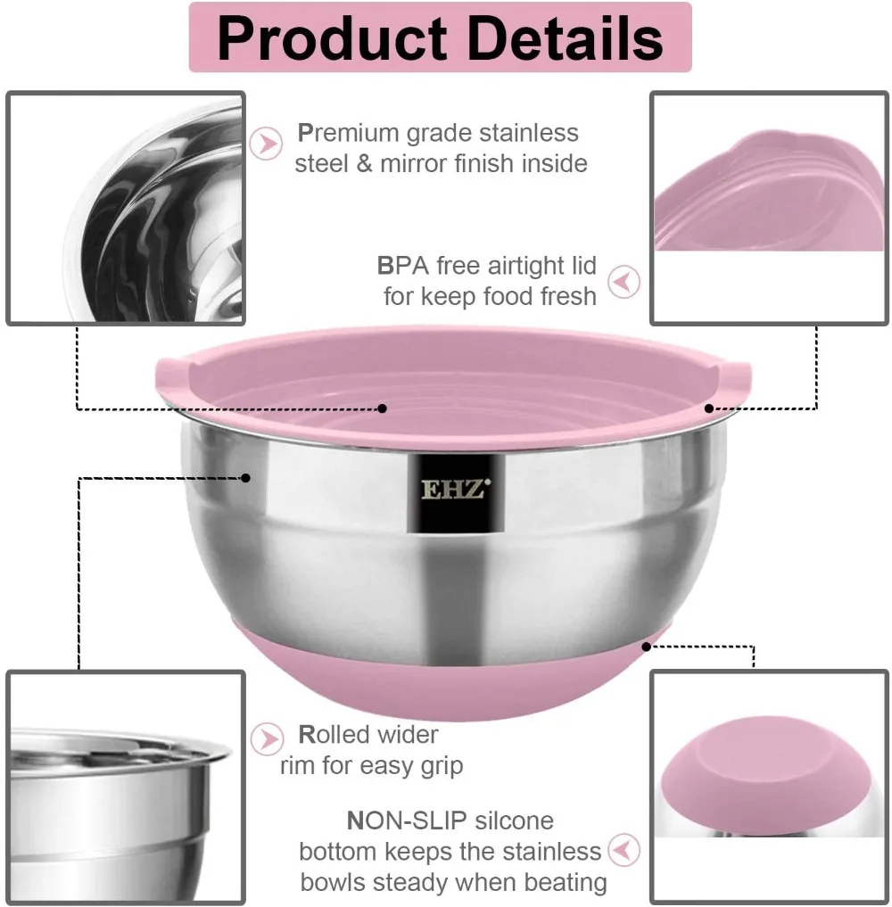 Отзывы о Набор салатников EHZ из нержавеющей стали с крышкой для замешивания яиц