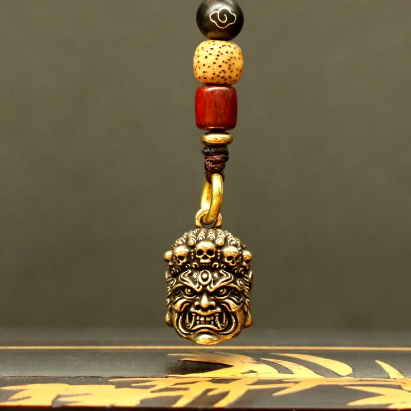 Латунный король фудо, Череп, голова, реинкарнация, властелин, автомобильные брелки, подвеска, винтажная тибетская буддийская женская сумка Подвесные Подарки