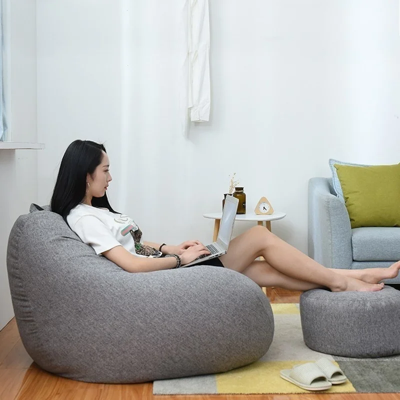 Lazy Bean Bag Sofa Cover Chairs Without Filler Update Thick Cotton Linen Cloth Lounger Seat Couch Tatami Living Room Furniture