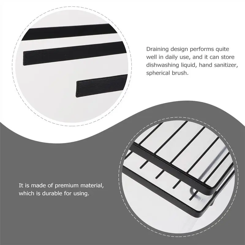Вы все еще расстроены из-за беспорядка кухонной утвари? Эта кухонная раковина Стойка поможет вам решить проблему. Изготовлен из высококачественного материала, Который является прочным для использования. Дизайн Слива отлично работает в Ежедневное использование, и он может хранить жидкость для мытья посуды, дезинфицирующее средство для рук, Сферическая кисть.Особенности