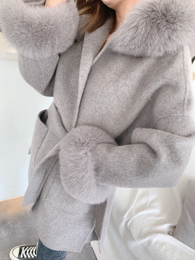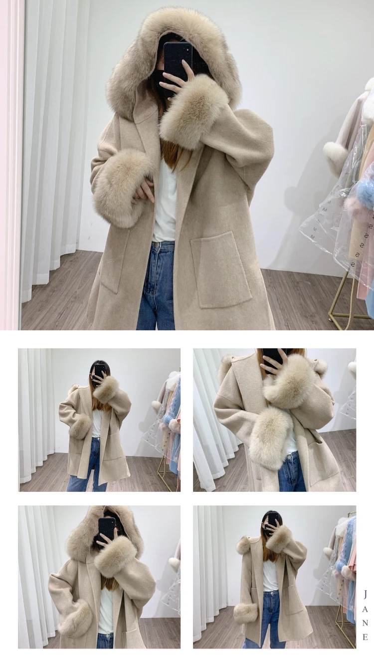 Отзывы о Женское двустороннее шерстяное пальто с воротником из натурального Лисьего меха