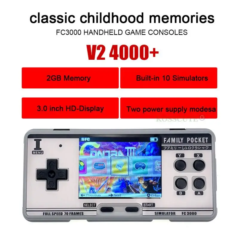 Новая игровая консоль FC3000 V2 в стиле ретро с цветным IPS экраном, Классическая портативная игровая консоль 4000 + игр, 10 форматов, IPS экран