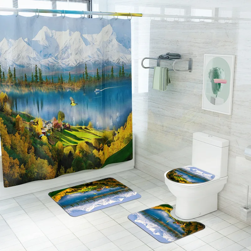 Zeegle Набор ковриков для ванной, противоскользящий ковёр для ванной, водостойкая занавеска для ванной, моющаяся Крышка для ванной, комплект коврик для туалета USD 34,82/Шт/Лот 1