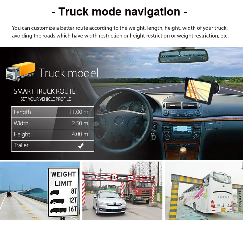 Вы можете выбрать лучший маршрут в соответствии с весом, длиной, высотой, шириной вашего грузовика,